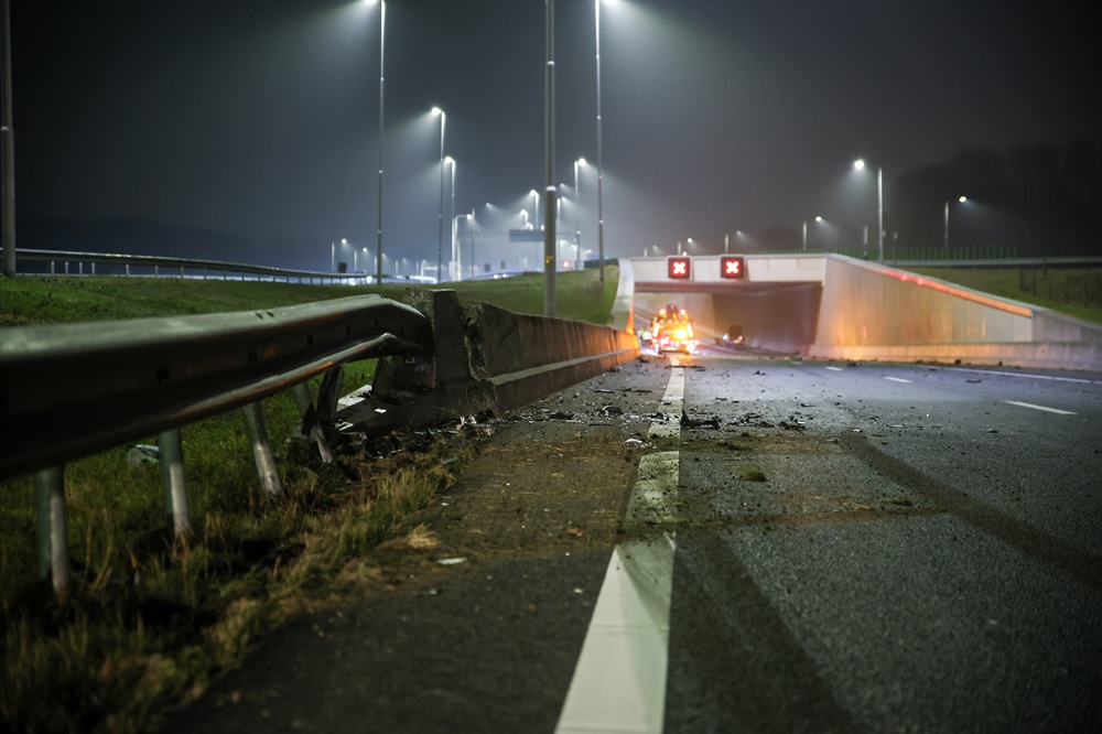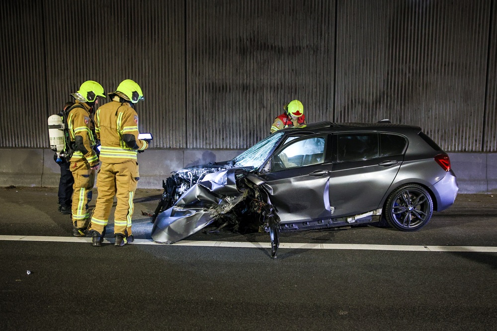 De auto verloor bij het ongeval een wiel, raakte een vangrail en kwam zwaar gehavend tot stilstand. Over de rijbaan lagen brokstukken verspreid. De brandweer voerde na aankomst een nacontrole uit om zeker te zijn dat er geen brandgevaar of lekkages waren.