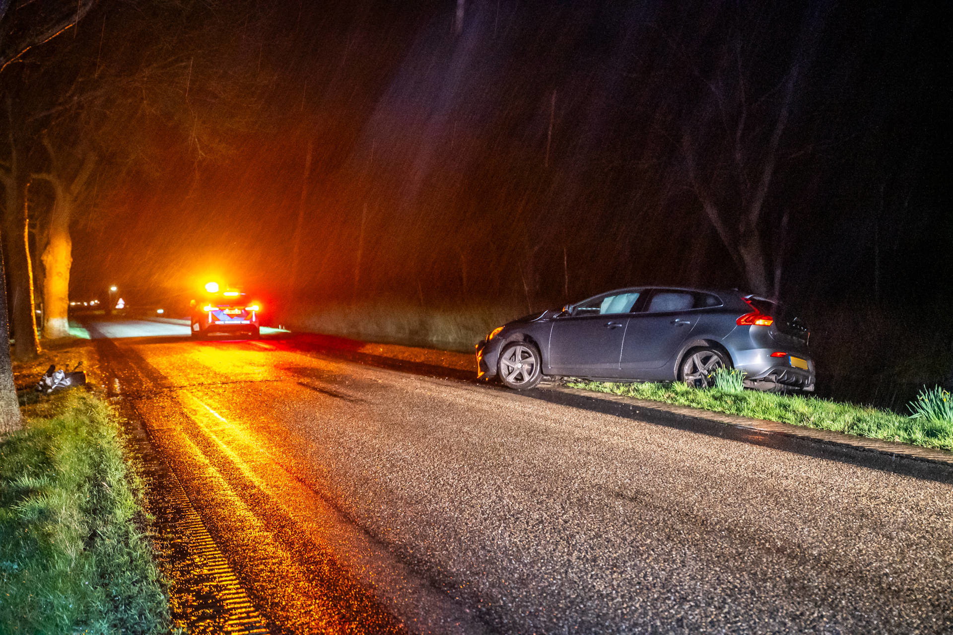 Bij aankomst van de politie bleek de bestuurder ongedeerd. De ambulance hoefde daarom niet meer ter plaatse te komen. Agenten hebben de automobilist naar huis gebracht. Een bergingsbedrijf heeft de zwaar beschadigde auto afgevoerd. Door de aanrijding brak onder meer de as van het voertuig af.