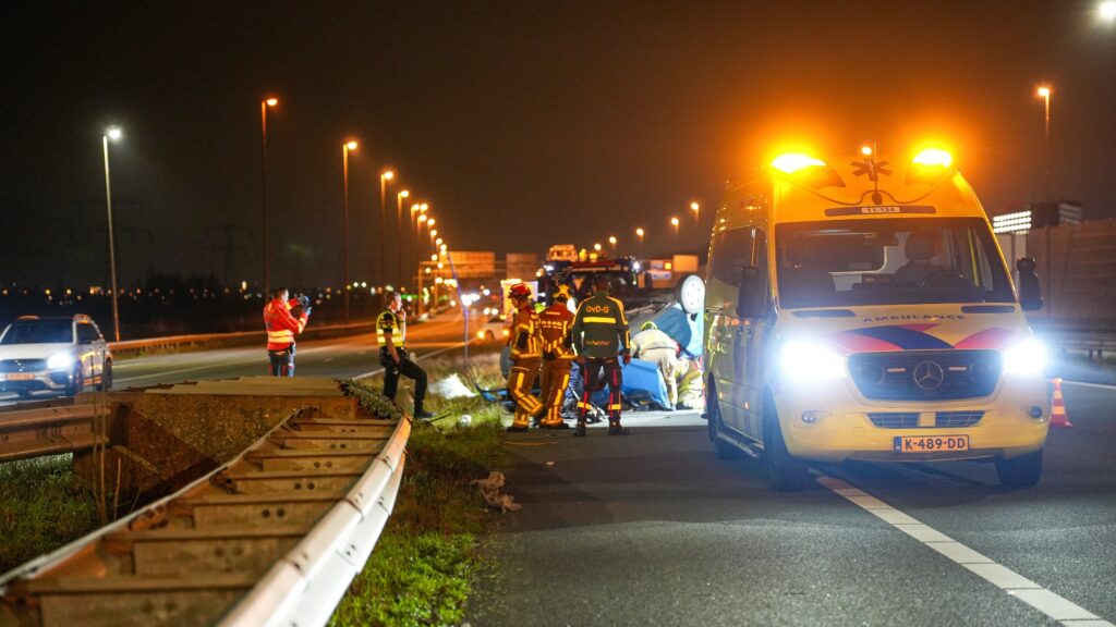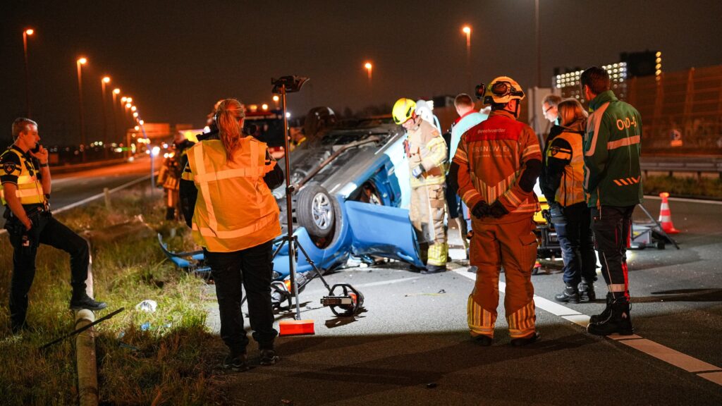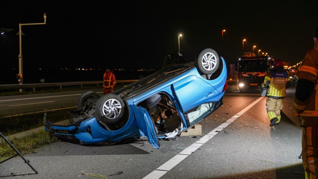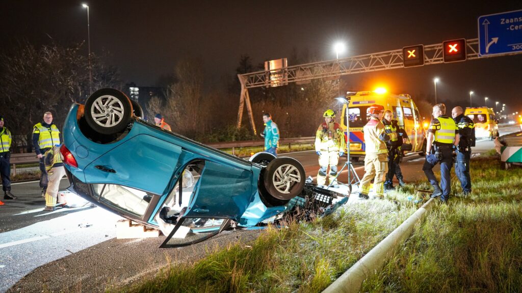 Een auto met daarin een ouder echtpaar botste door nog onbekende oorzaak tegen een lantaarnpaal in de middenberm, waarna het voertuig over de kop sloeg, zo meldt zaandamsdagblad. De inzittenden zijn door de brandweer uit de auto bevrijd en met onbekend letsel naar het ziekenhuis gebracht.