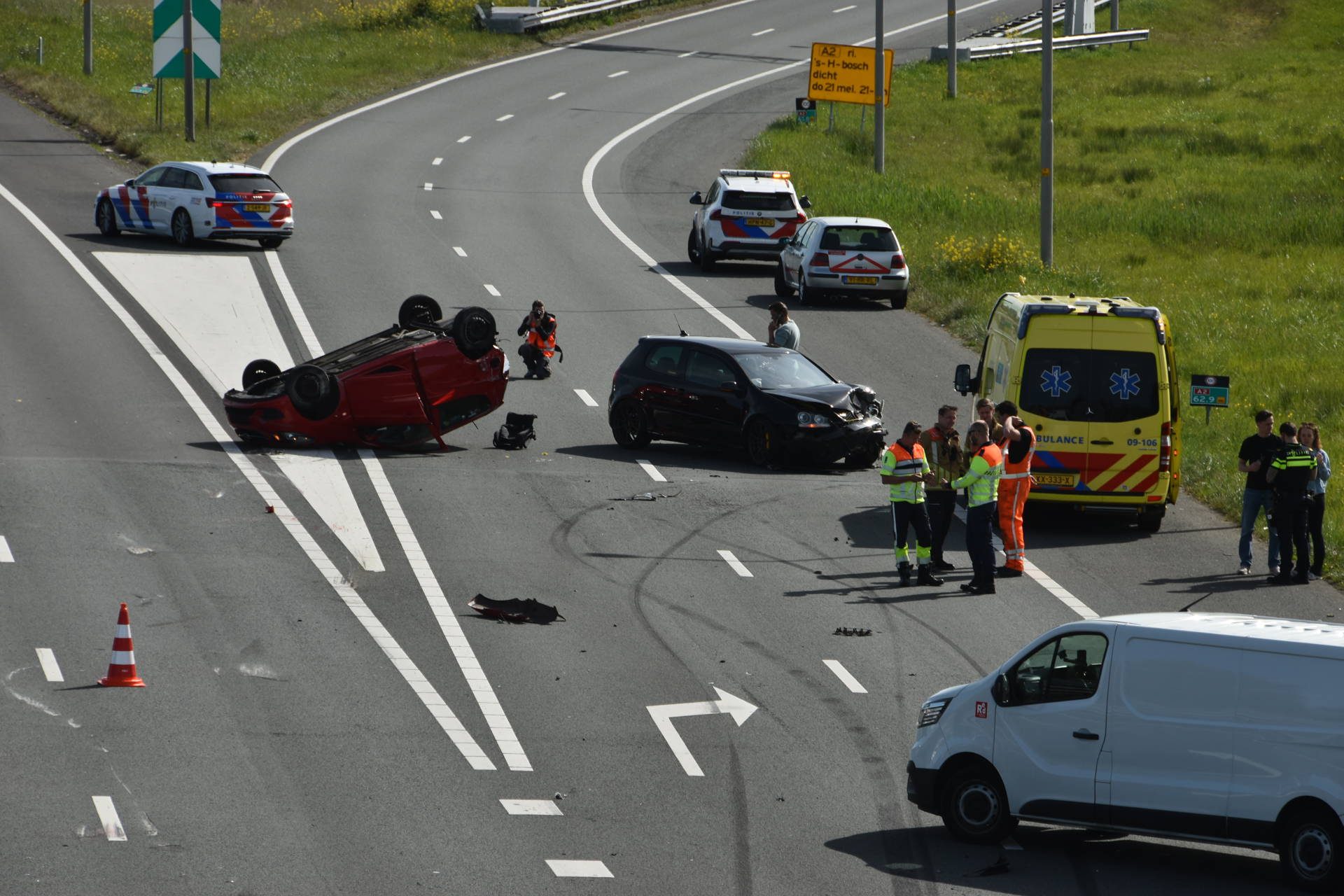 UTRECHT – Zondagmiddag werd de brandweer met spoed opgeroepen voor een verkeersongeval op de A2 bij Utrecht. De melding kwam rond 16:03 uur binnen bij de hulpdiensten.