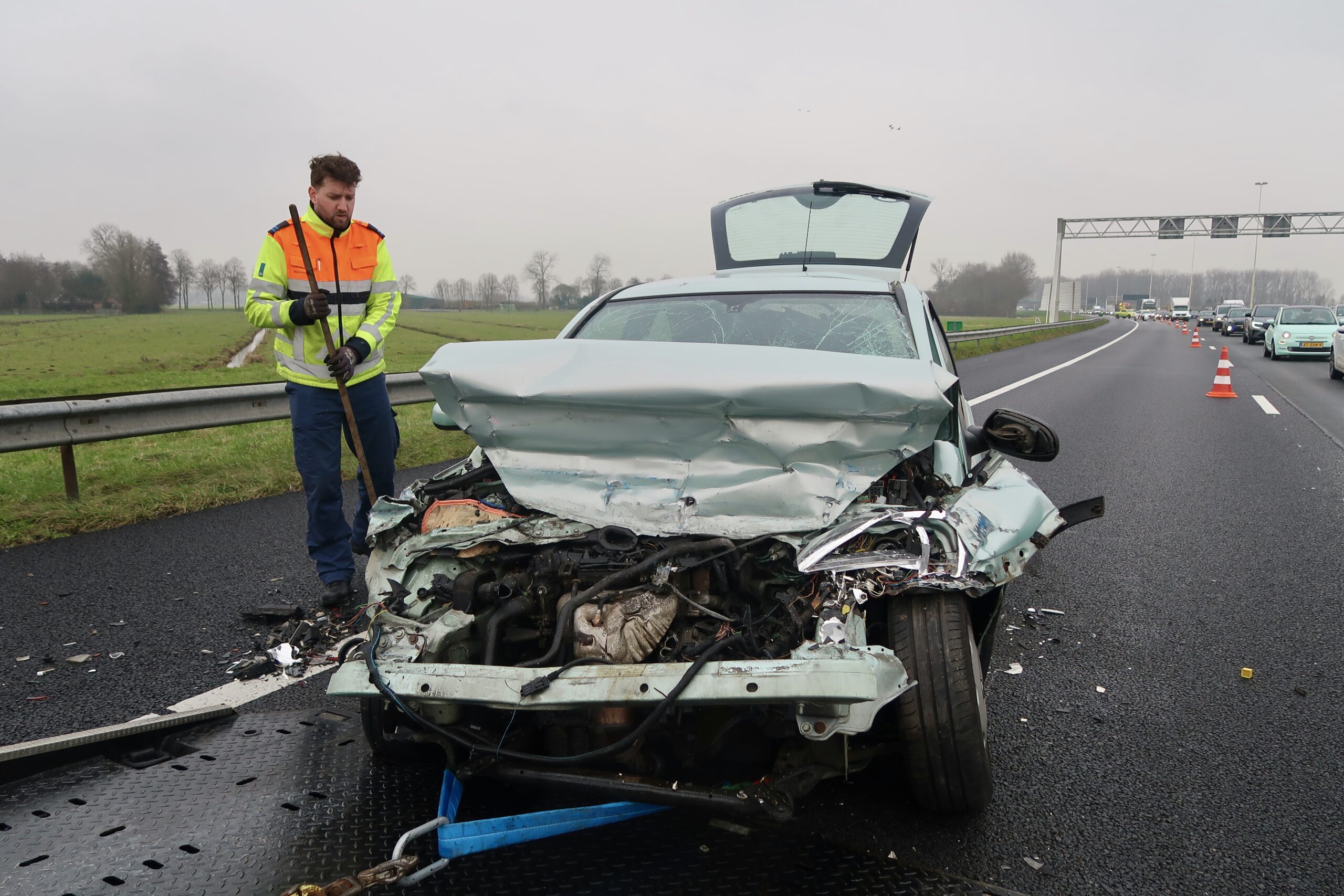 Een bergingsbedrijf heeft de beschadigde auto van de rijbaan verwijderd. Tijdens de afhandeling van het incident was tijdelijk één rijstrook afgesloten, wat leidde tot vertraging voor het overige verkeer.