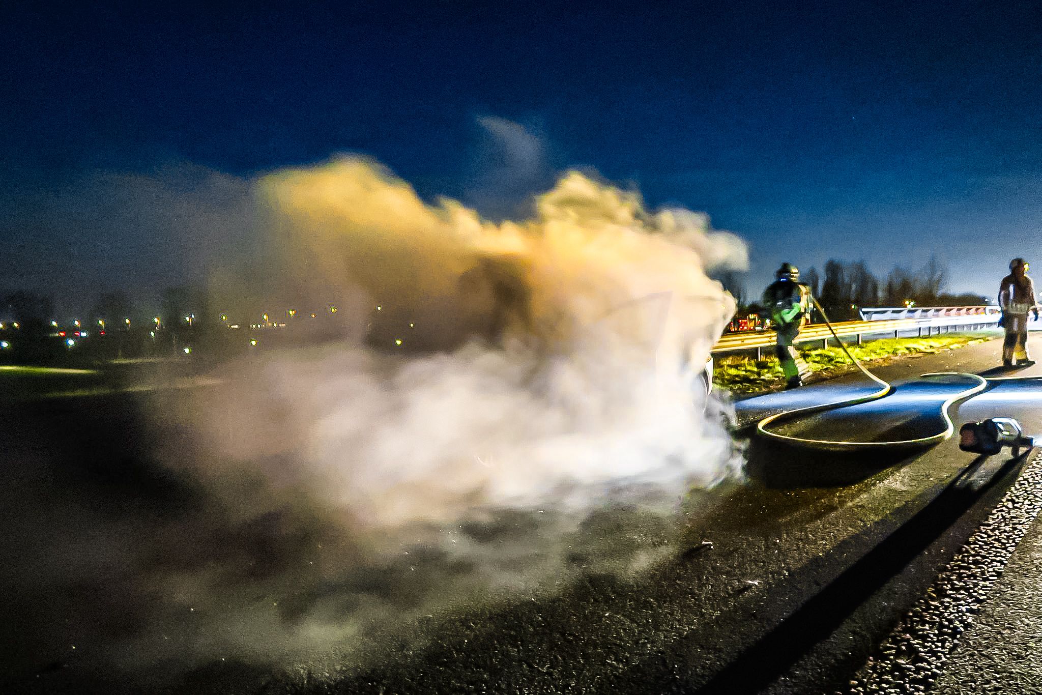 Tijdens het rijden verloor het voertuig volgens de eerste meldingen plotseling vermogen. Kort daarna ontstond brand. De bestuurder wist de auto veilig op de vluchtstrook tot stilstand te brengen. Bij aankomst van de brandweer stond het voertuig al grotendeels in brand. Het vuur was snel onder controle en verdere uitbreiding werd voorkomen.