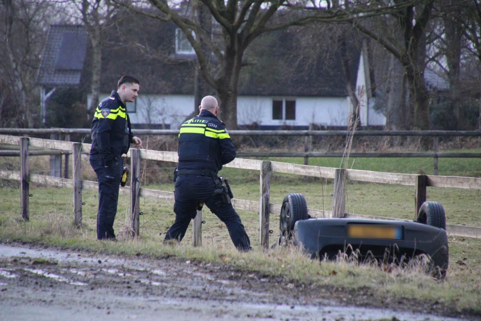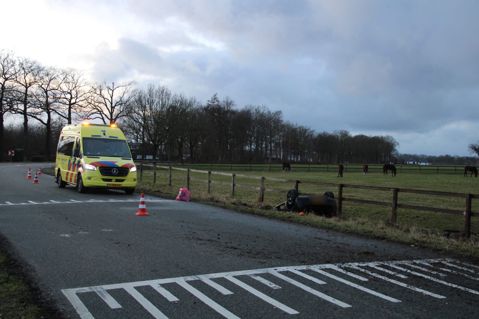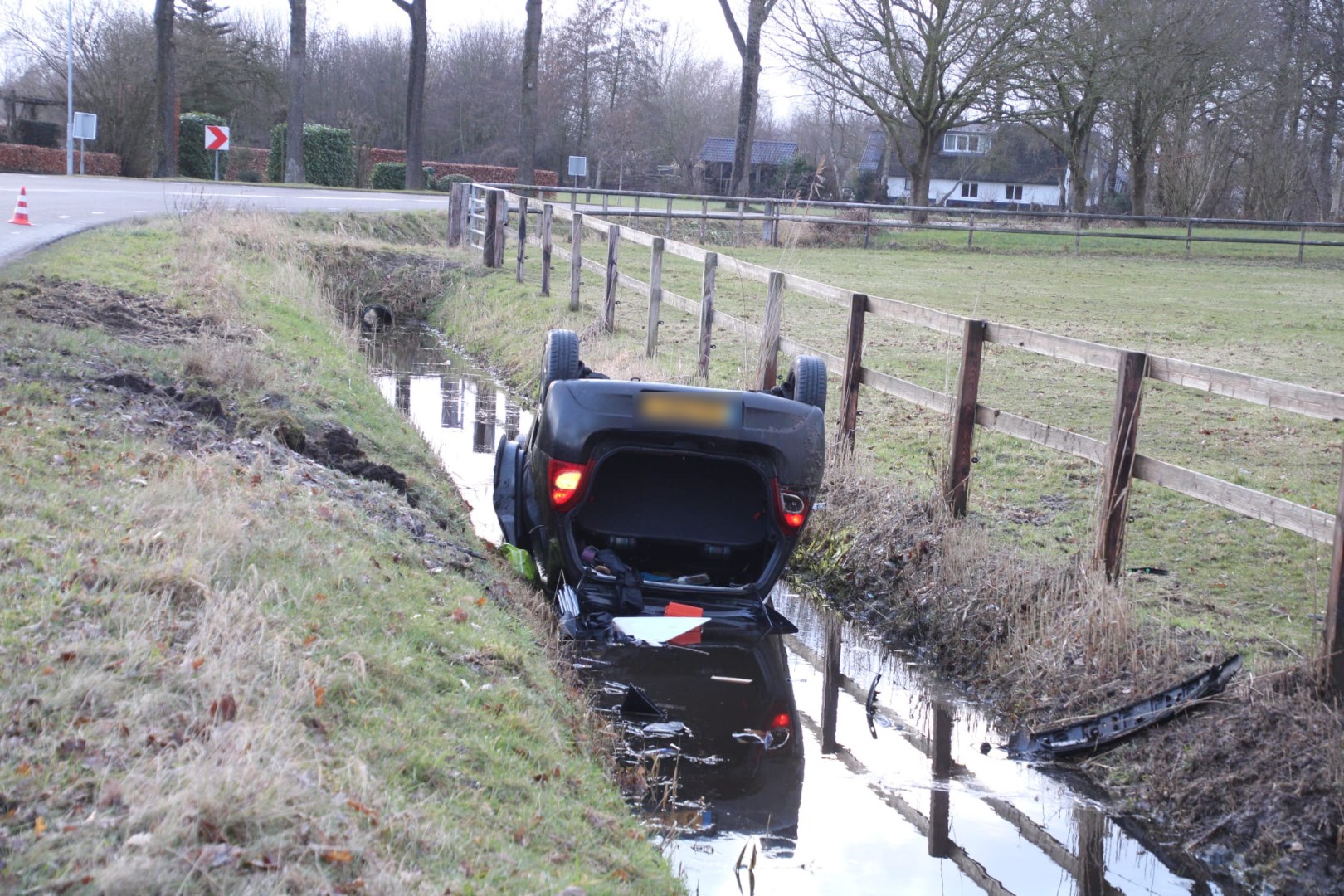 TERSCHUUR – Een automobilist is maandagmiddag gewond geraakt bij een eenzijdig ongeval op de Hoevelakenseweg. De auto belandde daarbij op de kop in een sloot.