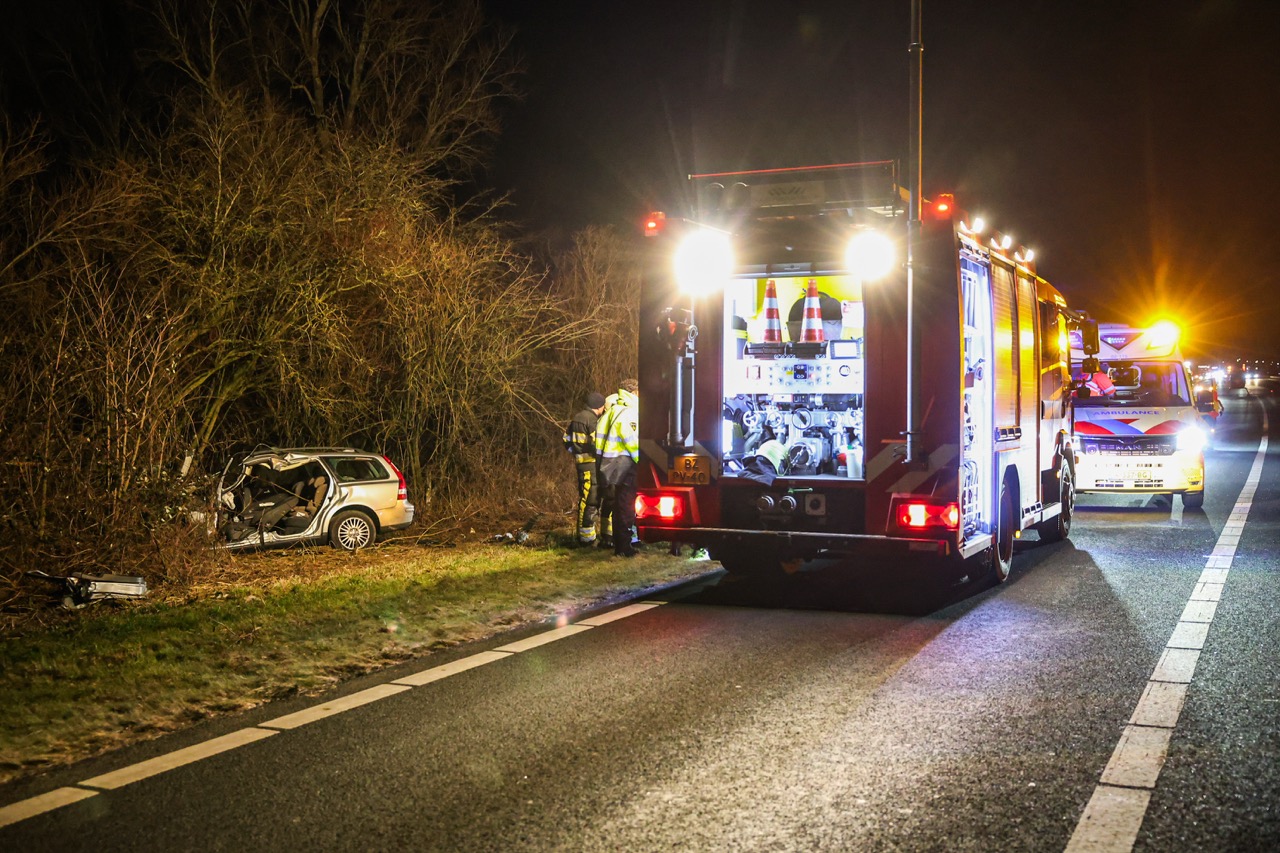 Politie, brandweer, ambulances en een traumateam werden met spoed gealarmeerd. Door nog onbekende oorzaak botste een personenauto op een vrachtwagen. De auto kwam vervolgens in de berm terecht en vloog in brand. De hulpverlening was gedurende de nacht in volle gang.