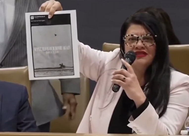 Ter referentie, de oorspronkelijke post toonde een afbeelding van een B-2 stealth bommenwerper boven een cowboy met het bijschrift “We zullen ons thuis weer hebben.” Tlaib verloor haar zelfbeheersing en spuide betekenisloze ‘woke’ platitudes: “Als moslim, als Palestijn, als kind van immigranten, zie ik… Ik ben hier niet welkom.”