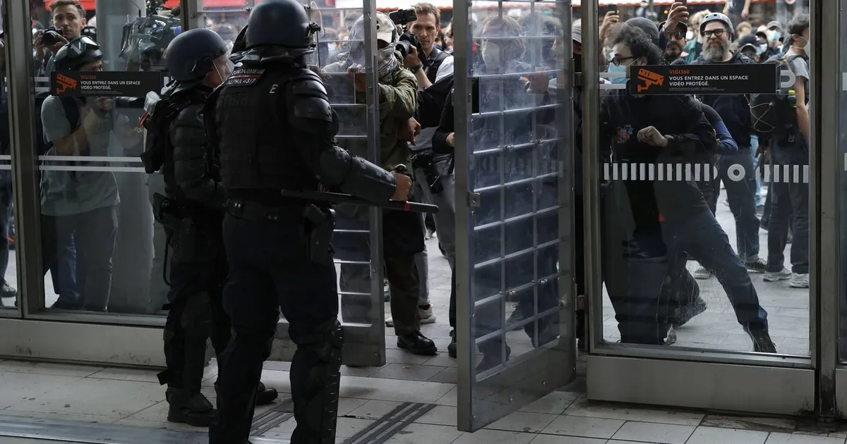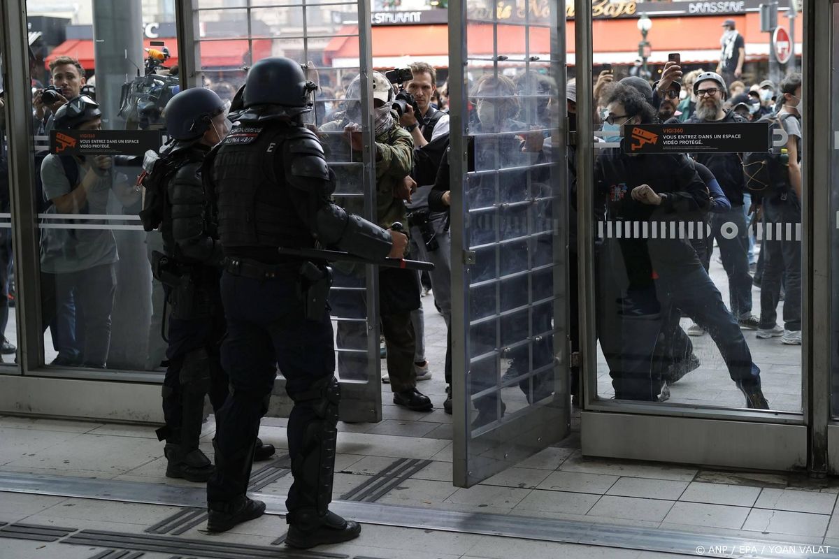 PARIJS (ANP) – Demonstranten in Parijs hebben geprobeerd het Gare du Nord-station binnen te dringen. De poging werd voorkomen door de oproerpolitie. Nabijgelegen kruispunten en toegangswegen werden uit voorzorg afgesloten.