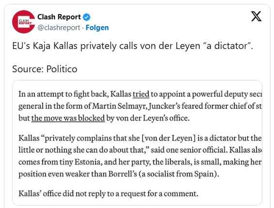 Maar terwijl haar mannelijke tegenstanders niet schromen om de voorzitter van de Europese Commissie rechtstreeks te bekritiseren, kiest Kallas voor de indirecte weg. Want deze “lek” is zeker geen toeval, maar strategie. Nu is het slechts een kwestie van tijd voordat de “bitchfight” in Brussel escaleert.