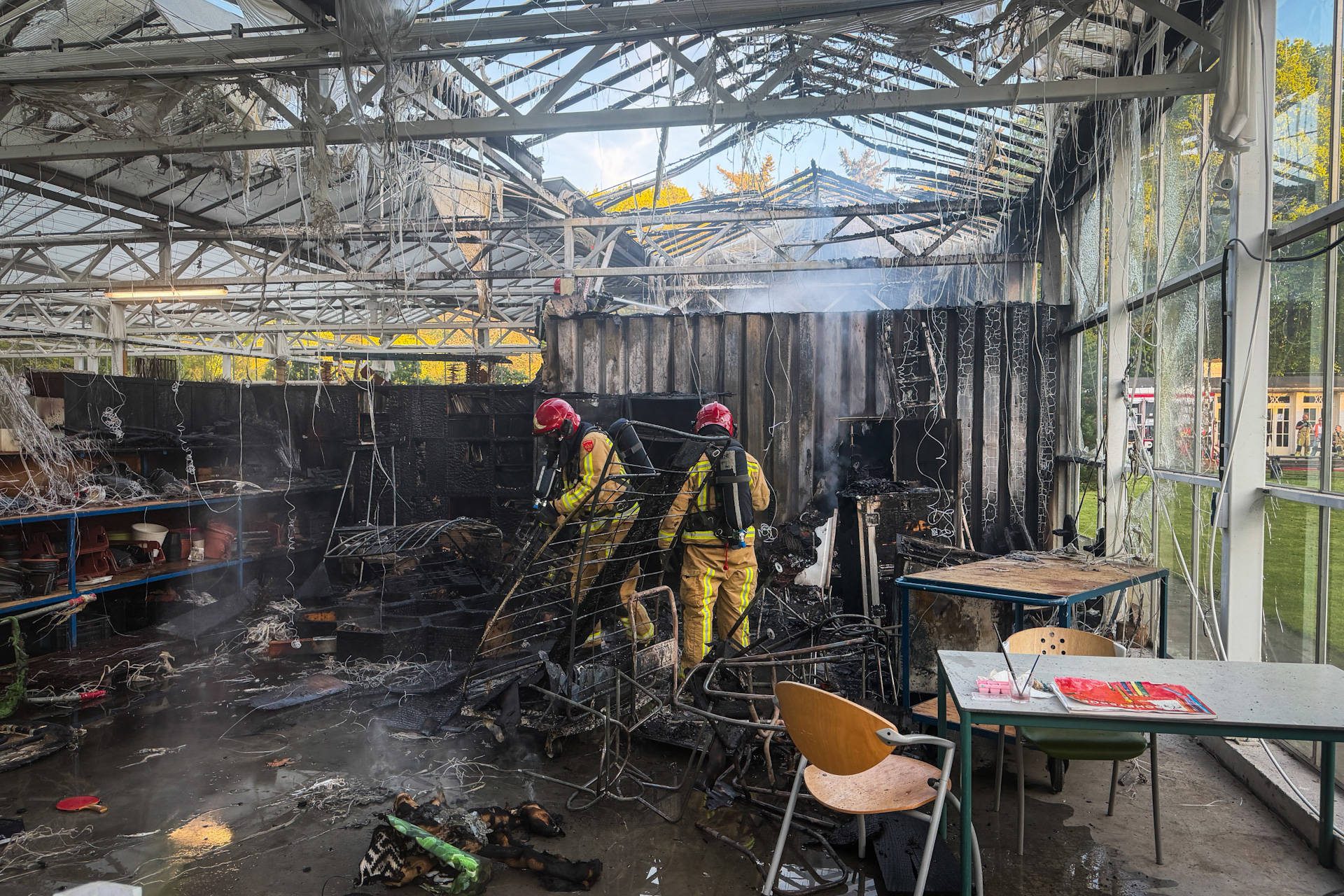EINDHOVEN – Zaterdagavond brak er brand uit in een kas aan de Dr. Poletlaan in Eindhoven, waar aanzienlijke schade is ontstaan. De kas, die wordt gebruikt voor dagbesteding en waar regelmatig activiteiten en evenementen plaatsvinden, raakte zowel binnen als aan het dak zwaar beschadigd.