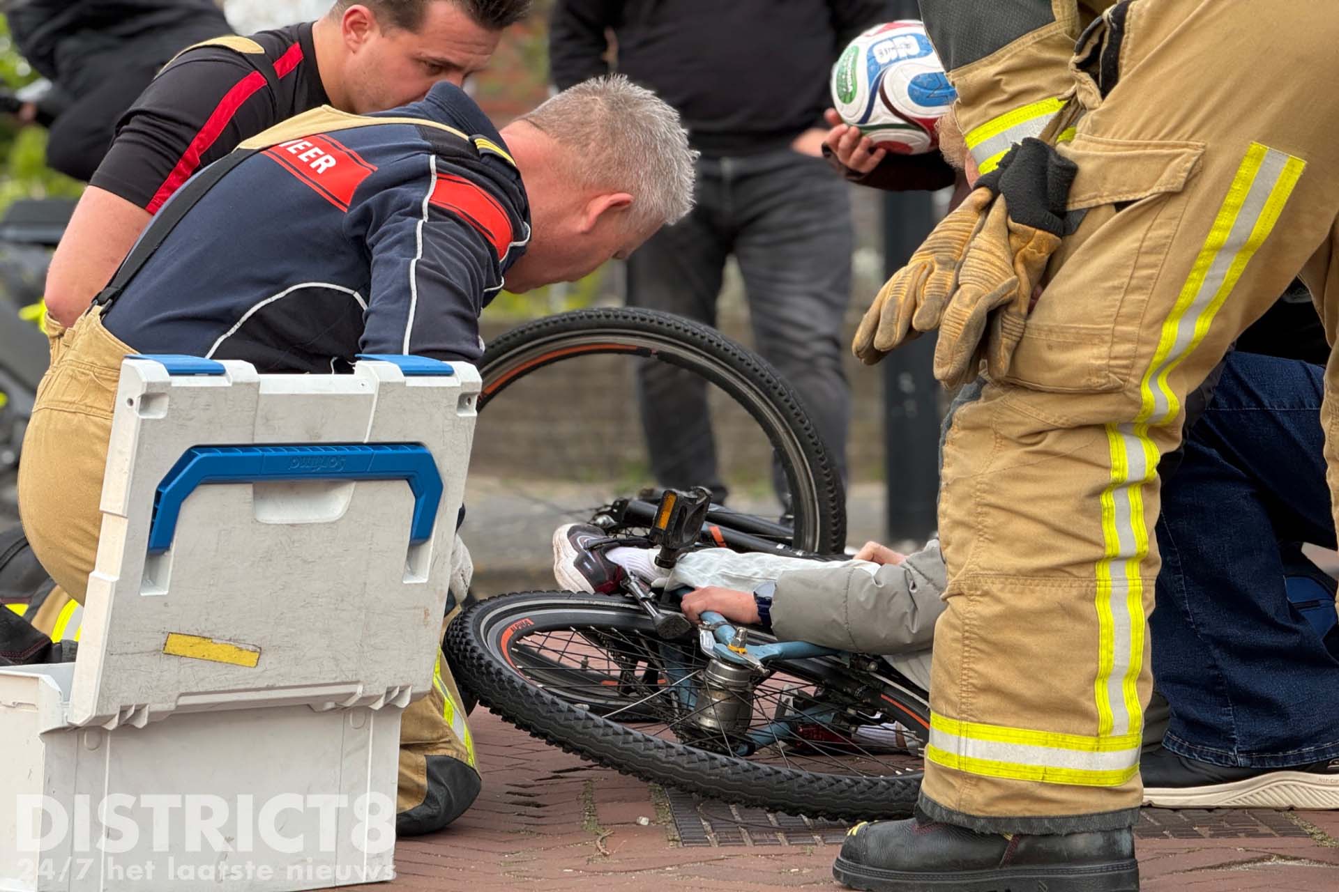 Rond kwart over vijf ging het mis. Door nog onbekende oorzaak viel de jongen tijdens het fietsen en kwam daarbij bekneld te zitten.
