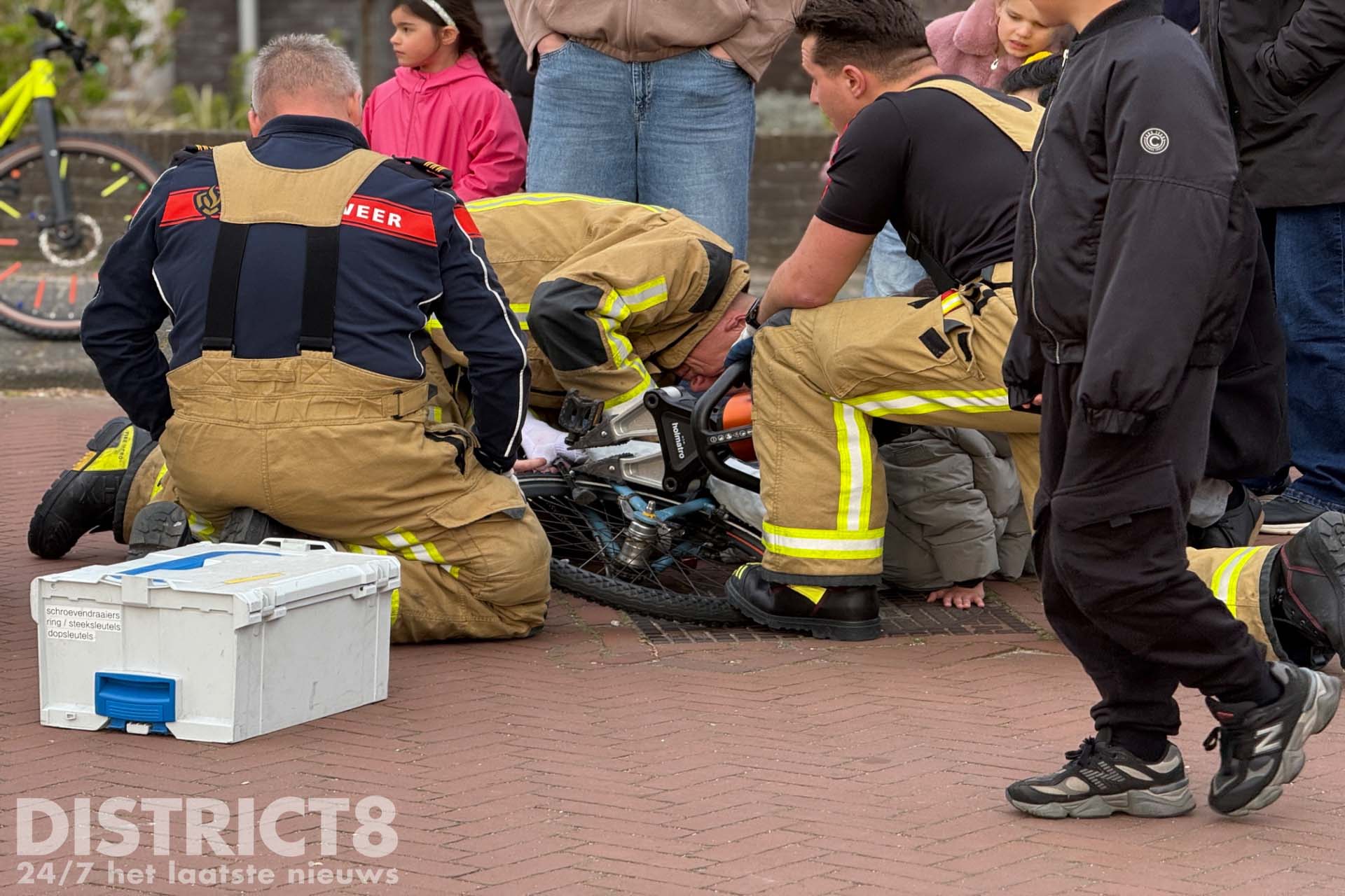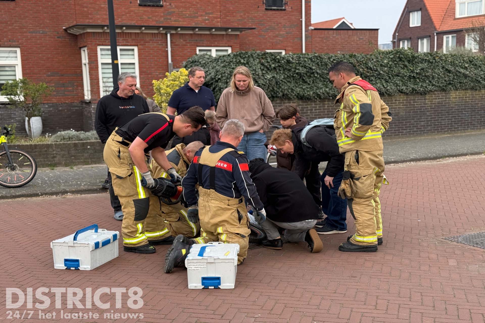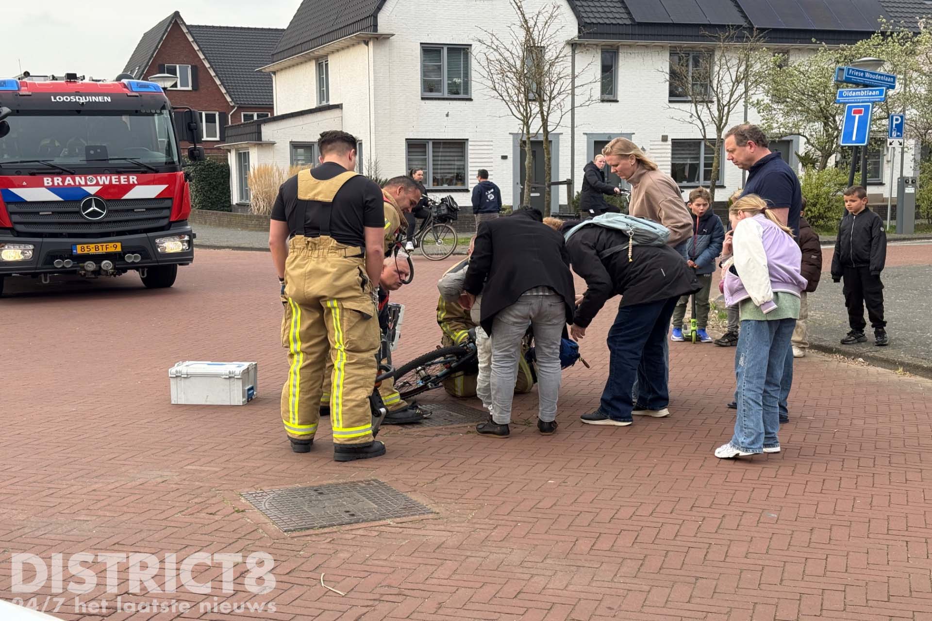 Den Haag – Op de kruising van de Friese Woudenlaan met de Oldambtlaan in Den Haag is dinsdagmiddag 24 maart een jongetje vast komen te zitten met zijn onderbeen en enkel tussen de trapper en het frame van zijn fiets. De brandweer moest eraan te pas