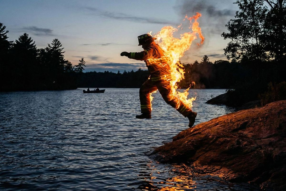 Het slachtoffer veranderde in een levende fakkel. In een wanhopige poging om de vlammen te doven, sprong hij het kanaal in. Hij liep ernstige brandwonden op, vooral aan zijn benen, en is in zorgwekkende toestand afgevoerd naar het brandwondencentrum.
