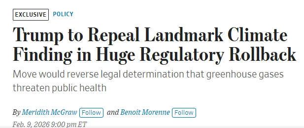Volgens berichtgeving in The Wall Street Journal is de regering-Trump van plan om de Endangerment Finding van de EPA uit 2009 in te trekken – de hoeksteen van de regelgeving die vijftien jaar lang klimaatregels, voertuigvoorschriften, controles op de energiesector en biljoenen dollars aan nalevingskosten mogelijk heeft gemaakt.