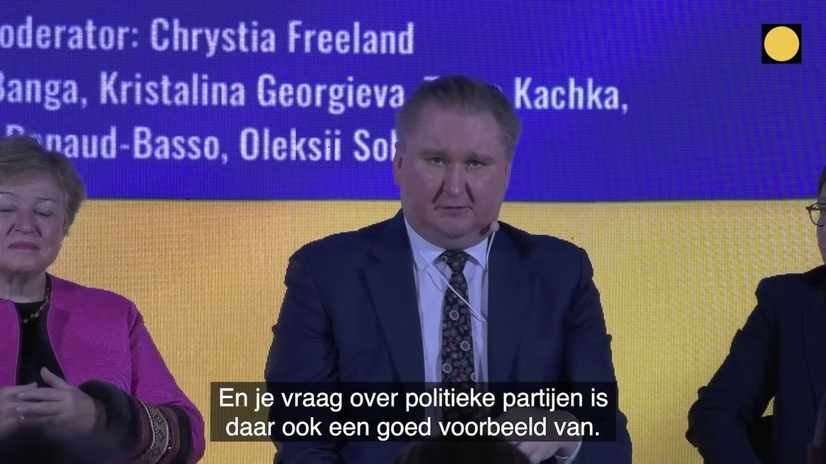 Het World Economic Forum is in volle gang. Journalist Jonathan Krispijn vroeg de Oekraïense vicepremier Taras Katsjka in Davos waarom 11 politieke partijen in Oekraïne zijn verboden en hoe dat de democratische regels helpt.