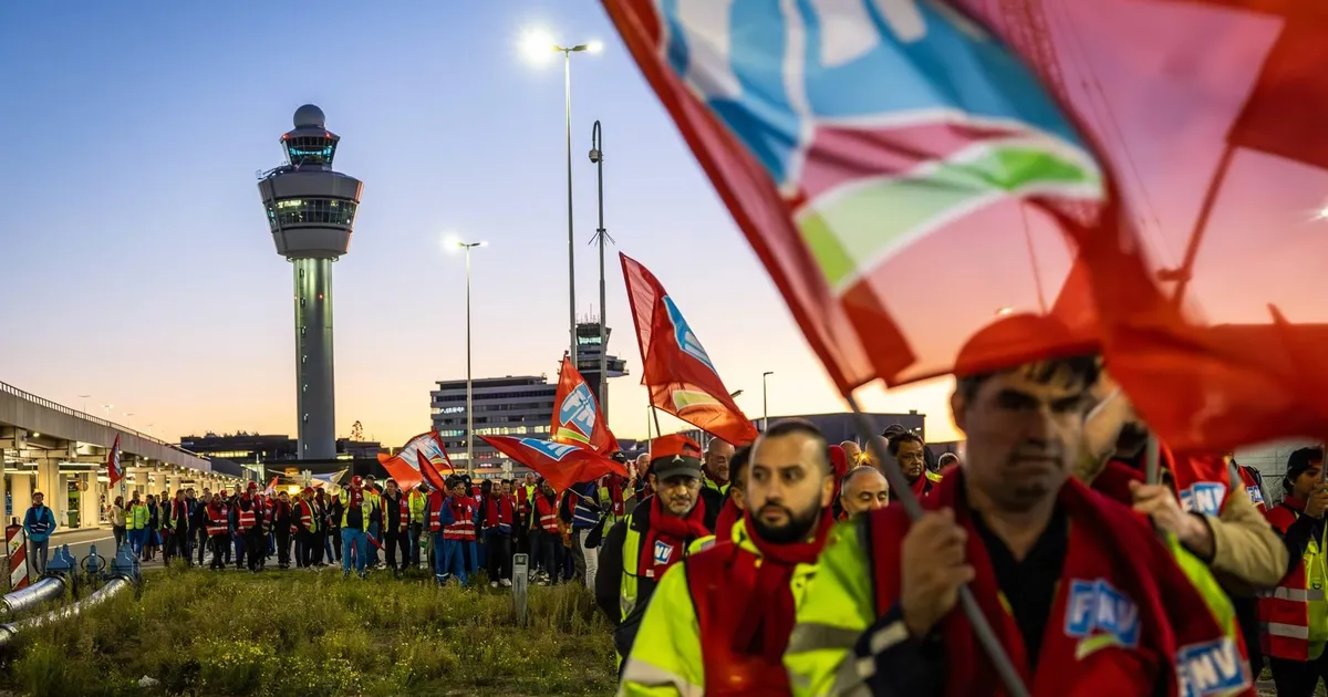 Er klinkt harde muziek en er staan tentjes van de vakbonden. Op Schiphol Plaza, de entree van de luchthaven, staan volgens FNV nog veel meer mensen, die later aansluiten. De bond verwacht woensdagochtend tussen de zevenhonderd en negenhonderd actievoerders. Door de acties zijn 119 vluchten geannuleerd. Volgens een medewerker van de servicebalie van KLM zijn er geen passagiers die niet weten dat hun vlucht is geannuleerd.
