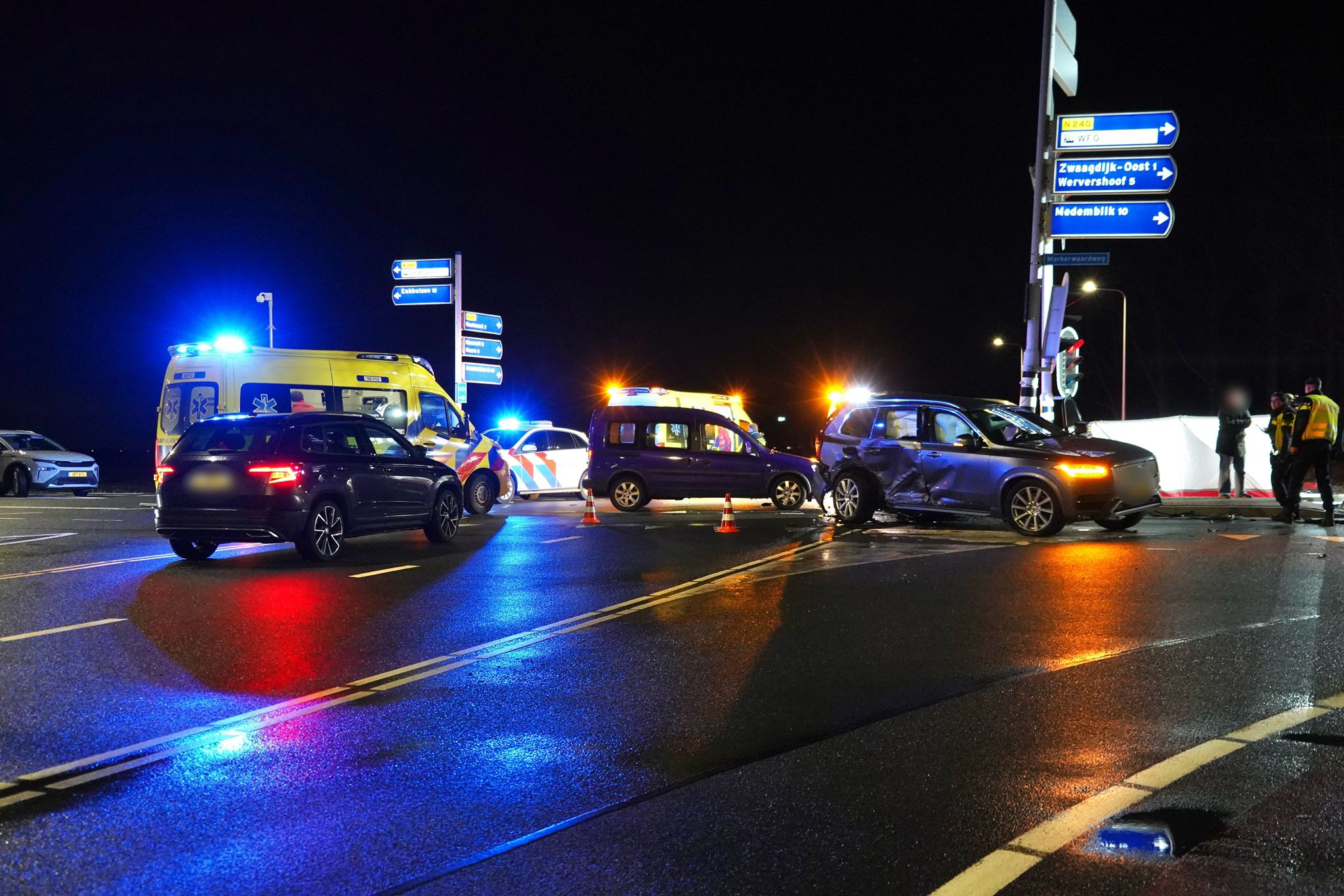 Een persoon raakte gewond en is met onbekend letsel naar het ziekenhuis vervoerd. Twee anderen zijn uit voorzorg ter controle eveneens naar het ziekenhuis gebracht. Voor het incident werd ook een traumateam per helikopter opgeroepen. De kruising lag bezaaid met brokstukken en stond vol met hulpdiensten.
