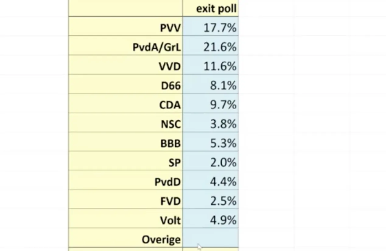 Maurice de Hond heeft de procenten van de Exit Polls in handen. Daaruit blijkt dat het gat tussen GroenLinks-PvdA aan de ene kant, en PVV aan de andere kant echt wel significant is. Het gaat namelijk om 4 procentpunt. Dat dicht de PVV niet zomaar even…