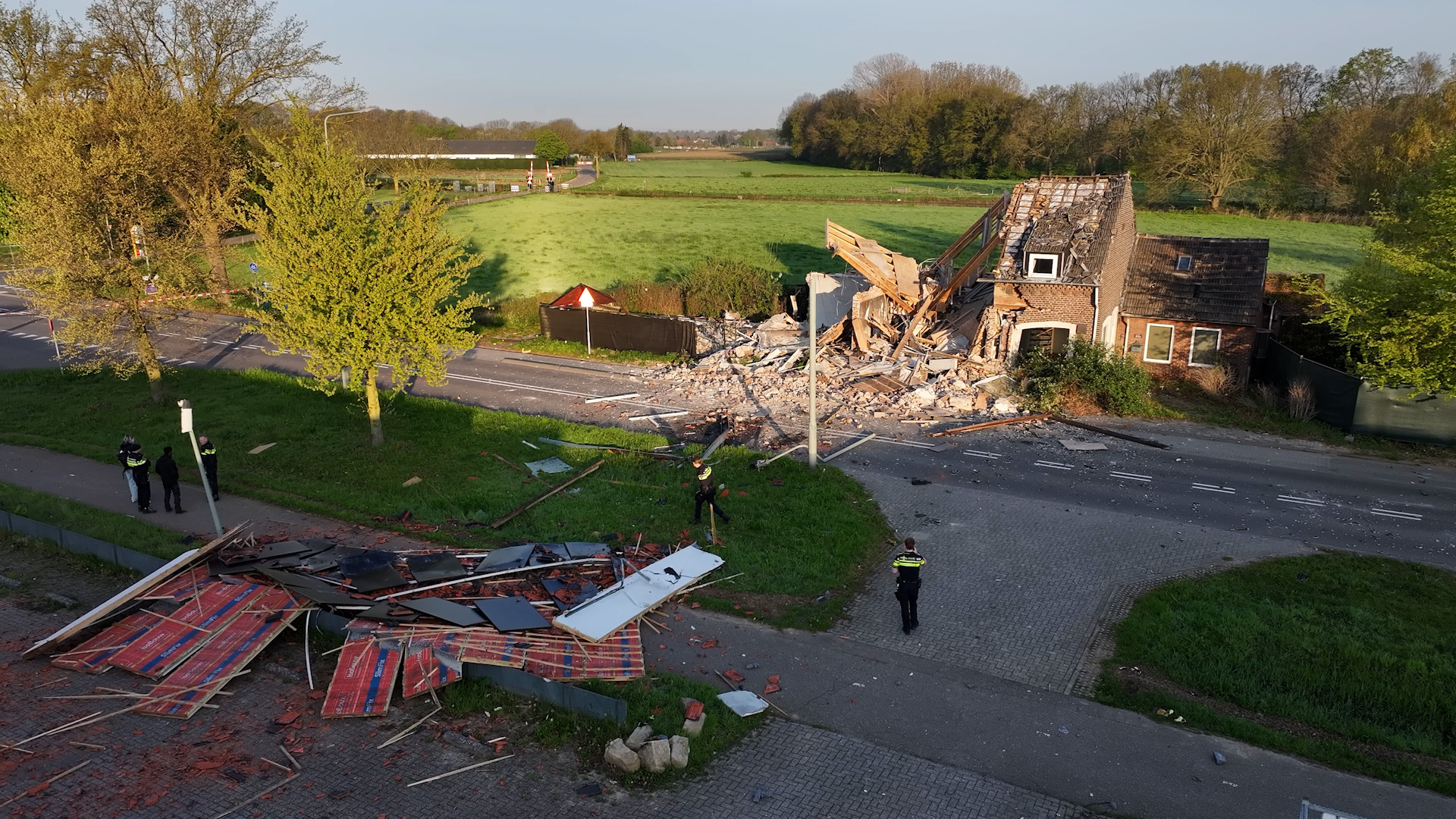 De straat blijft voorlopig afgesloten vanwege de brokstukken en mogelijke aanwezigheid van asbest. Enexis heeft gas en stroom afgesloten. De brandweer doet verder onderzoek.
