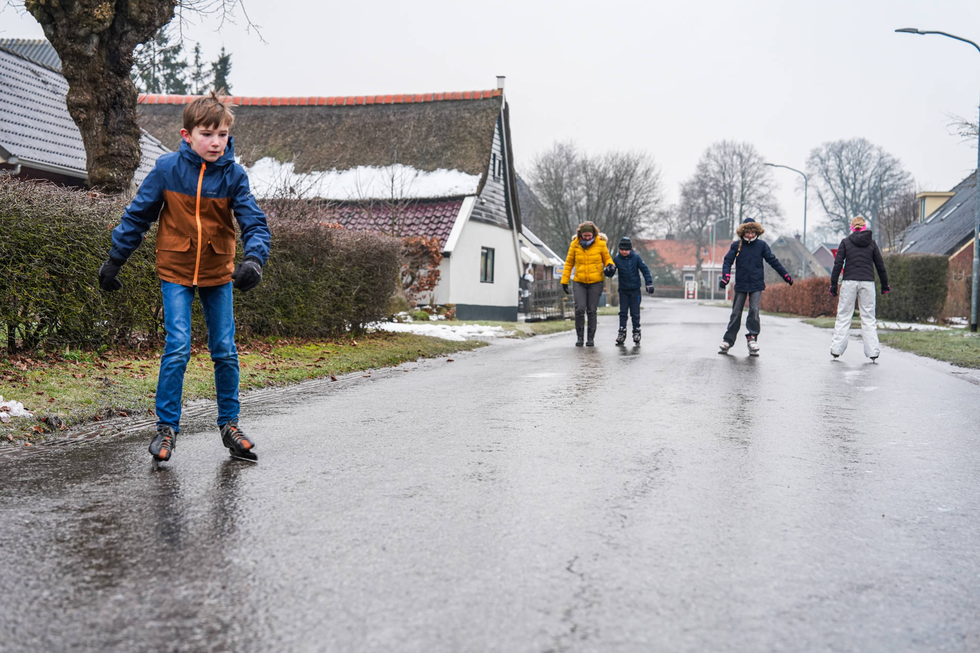 In de ochtenduren maakten kinderen gebruik van de bijzondere situatie door met schaatsen rondjes door het dorp te rijden. Met hulp van ouders werden de ijzers ondergebonden, waarna op straat werd geschaatst. Door de afgekondigde code rood in Drenthe hoefden veel kinderen niet naar school.