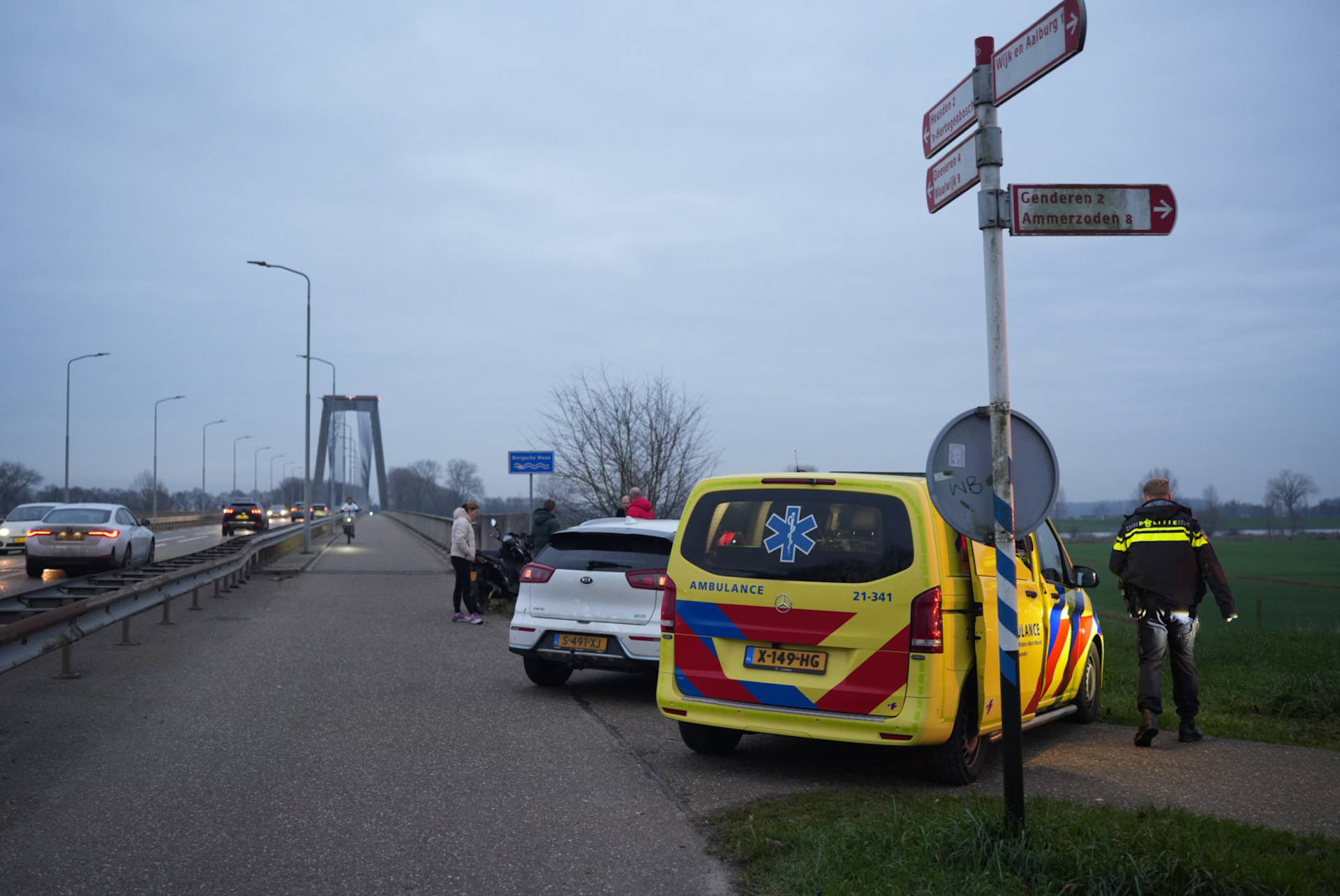 WIJK EN AALBURG – Op de Heusdensebrug in Wijk en Aalburg heeft een aanrijding plaatsgevonden tussen een scooter en een fatbike. Het ongeval ontstond toen beide voertuigen elkaar frontaal raakten tijdens een verkeersmanoeuvre op de brug.