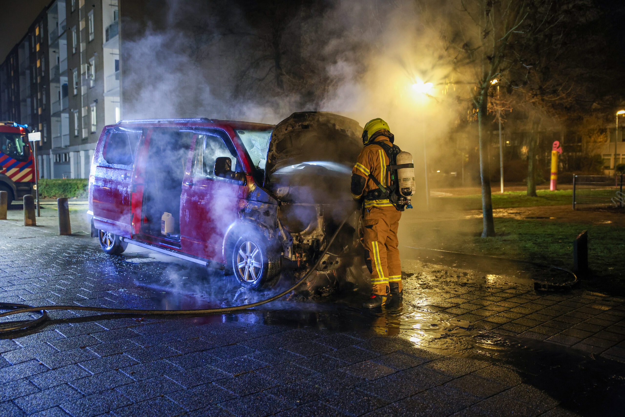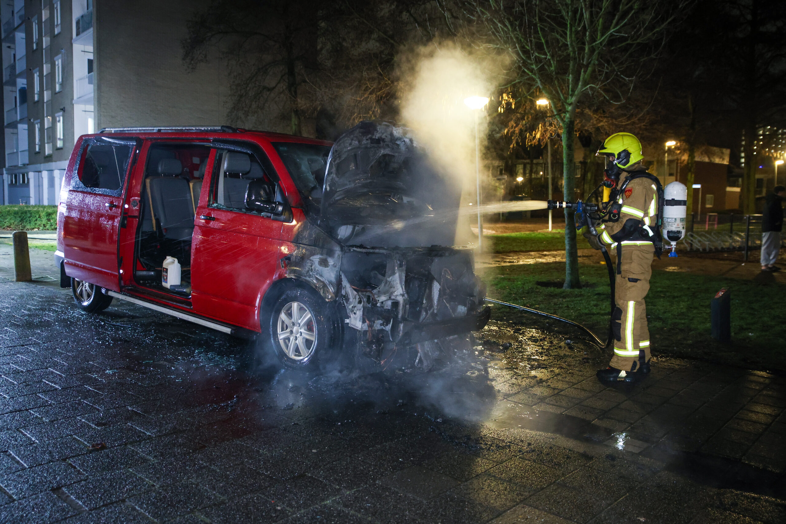 De melding kwam even na middernacht binnen, waarna de brandweer met spoed uitrukte. Bij aankomst stond het motorcompartiment van de bestelbus in brand. Vooral de voorzijde van het voertuig werd door het vuur getroffen en brandde volledig uit. De brandweer wist de brand onder controle te krijgen.