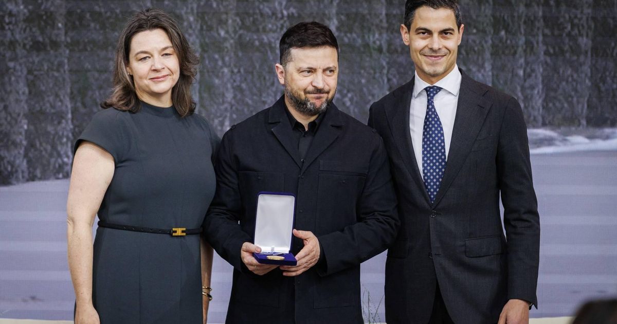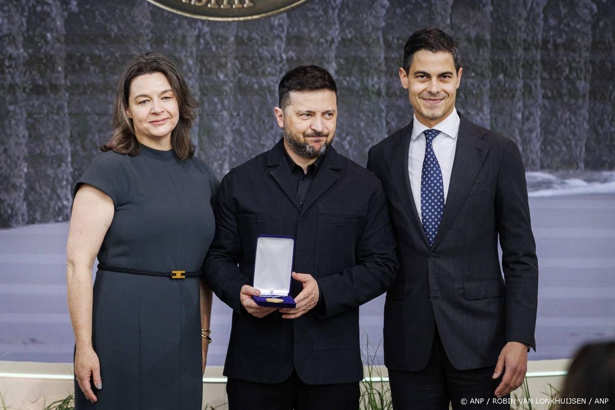 MIDDELBURG (ANP) – De Oekraïense president Volodymyr Zelensky heeft in Middelburg de International Four Freedoms Award in ontvangst genomen van premier Rob Jetten. Hij krijgt de prijs voor zijn niet-aflatende strijd voor vrijheid en onafhankelijkheid. Naast Zelensky wordt de prijs ook uitgereikt aan het Oekraïense volk.