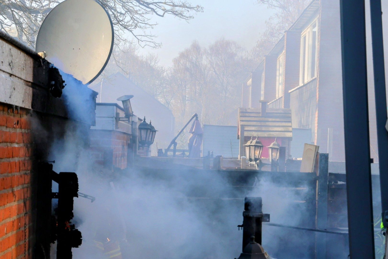 De brand breidde zich snel uit naar twee schuren en schuttingen achter rijtjeswoningen. Er werd opgeschaald naar middelbrand, mede doordat een gasfles ontplofte. In de omgeving was een harde knal te horen en er ontstond schade aan omliggende woningen.