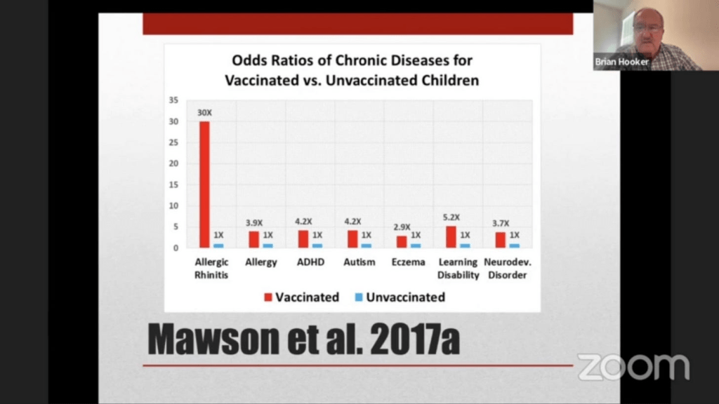 Welnu, professor Brian Hooker en de Democratische presidentskandidaat Robert F. Kennedy Jr. hebben een behoorlijke prestatie geleverd door meer dan 100 andere onderzoeken samen te stellen, zoals Mawson’s vergelijking van gezondheidsresultaten tussen gevaccineerde en niet-gevaccineerde kinderen.