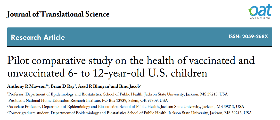 Dr. Hooker presenteerde een studie van Anthony R. Mawson en collega’s. Deze studie verzamelde informatie van moeders die hun kinderen thuisonderwijs gaven en richtte zich op kinderen tussen de 6 en 12 jaar.