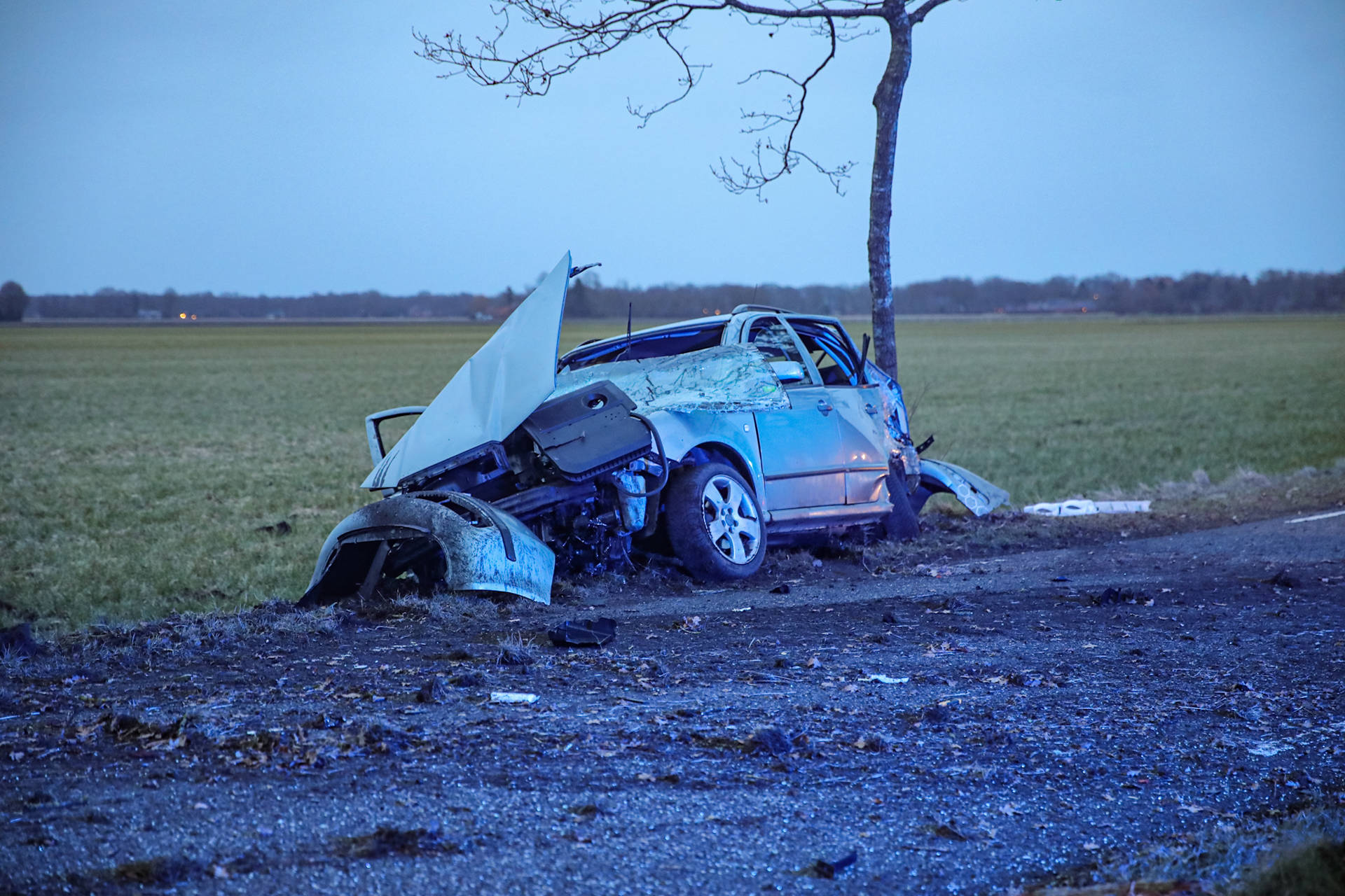 Het ongeval gebeurde rond 17.50 uur. De auto kwam na de klap zwaar in de kreukels tot stilstand langs de landweg. Hulpverleners hebben de inzittende uit het voertuig gehaald en in de ambulance behandeld. Over de ernst van het letsel is nog niets bekend. Het slachtoffer is met spoed overgebracht naar het ziekenhuis.