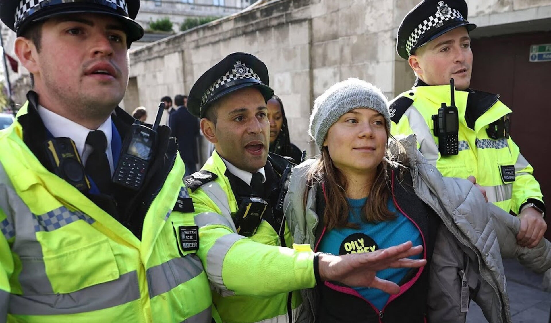 BREAKING: Greta Thunberg arrested under the Terrorism Act for holding a sign which says “I support Palestine Action prisoners. I oppose genocide”