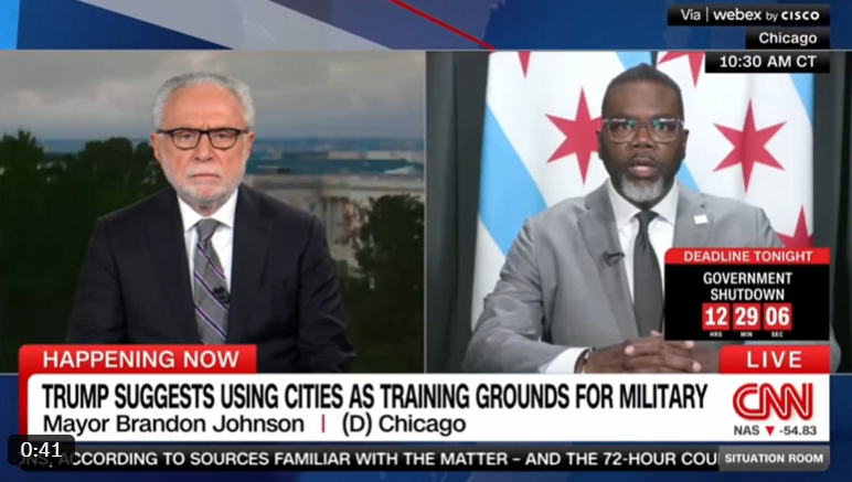 Op 30 september 2025 verscheen de burgemeester van Chicago, Brandon Johnson, op CNN en veroordeelde scherp de plannen van president Trump om gewapende federale troepen of Nationale Garde-eenheden in steden zoals Chicago in te zetten voor immigratiehandhaving en rechtshandhavingsondersteuning vorig jaar.