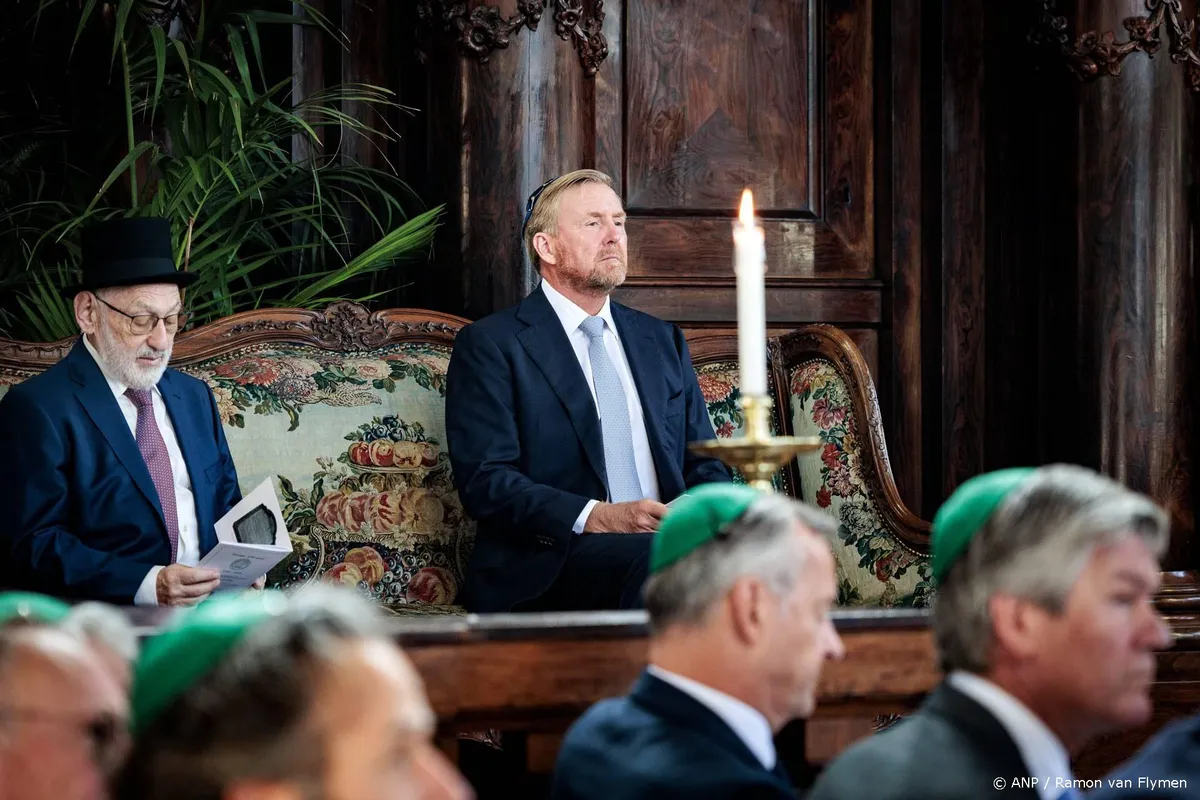 AMSTERDAM (ANP) – Koning Willem-Alexander heeft zondag in Amsterdam de viering van het 350-jarig bestaan van de Portugese Synagoge bijgewoond. Het bezoek van de koning aan het gebeds- en gemeenschapshuis voor joden aan het Mr. Visserplein was om veiligheidsredenen vooraf niet aangekondigd.