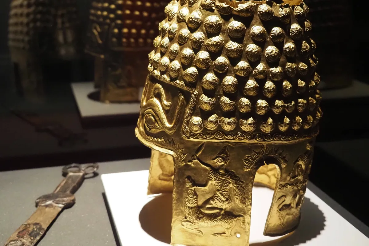 We hebben het hier niet over wat vage schilderijtjes of beeldjes van een lokale amateurkunstenaar. Nee, dit ging om een van de belangrijkste culturele erfstukken van Roemenië: de gouden helm van Cotofenesti, bijna puur goud, vijfde eeuw voor Christus. Een nationaal icoon. Gecombineerd met drie gouden armbanden vormde dit het kloppende hart van een internationale topcollectie die speciaal voor een tentoonstelling naar Assen was gebracht.