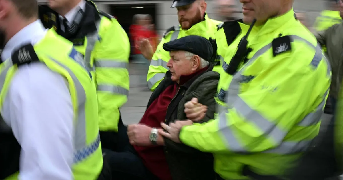 De demonstranten zaten op de grond en spraken met borden, spandoeken en leuzen hun steun uit voor Palestine Action. De demonstratie was ook gericht tegen genocide en het Israëlische optreden in de Gazastrook. Volgens Sky News waren er veel ouderen onder de arrestanten. Sommigen van hen zaten in een rolstoel of hadden een wandelstok.