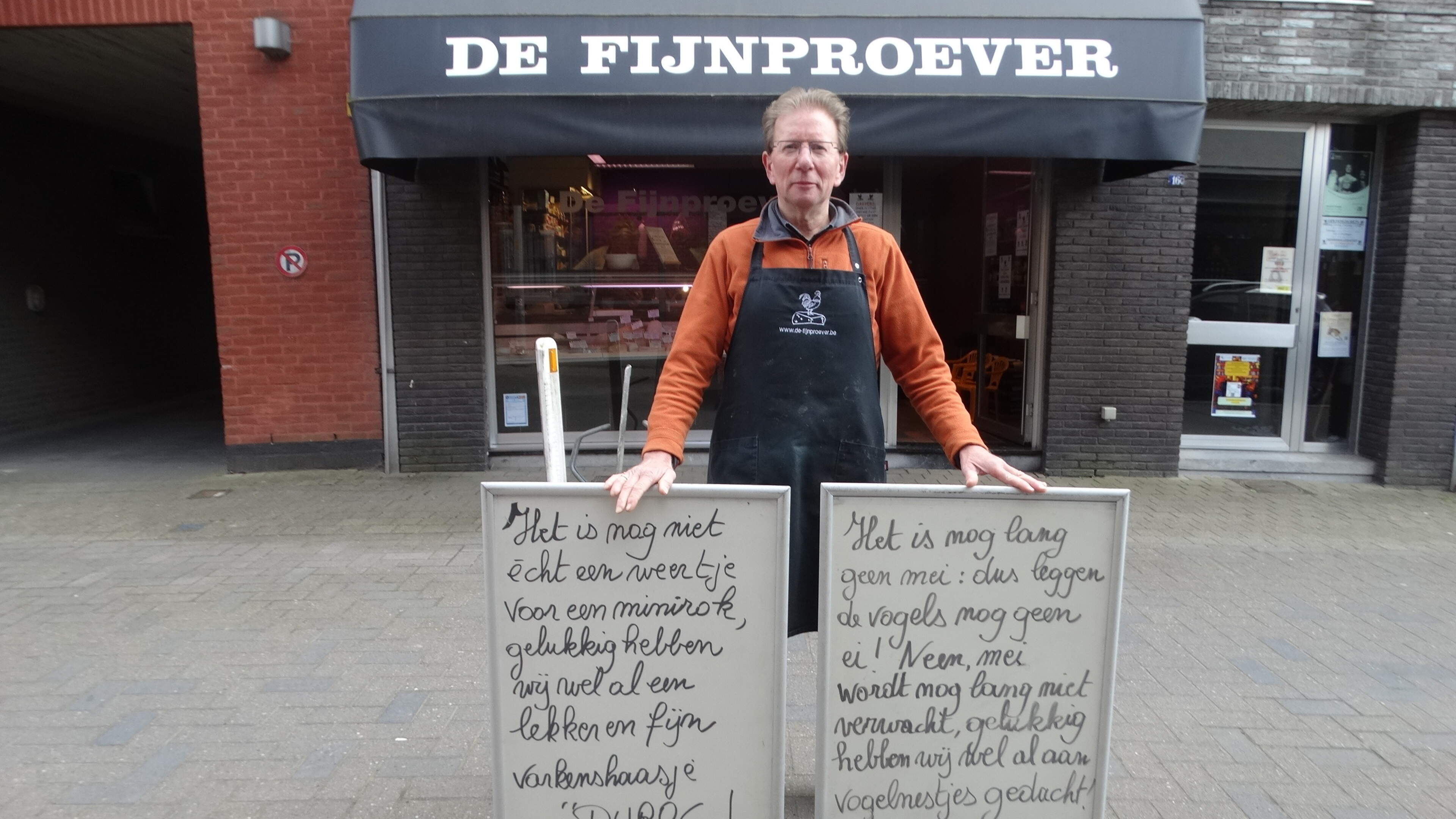 Voor An met het zwarte haar, uw beulingen liggen klaar. Met die profetische woorden lanceerde Theo Daelman (67) goed twintig jaar geleden een ludieke gewoonte bij De Fijnproever in Belsele. Tot op vandaag bezorgt de zaakvoerder zijn klanten een glimlach op het gelaat met reclameborden vol humoristische rijmpjes en bewuste schrijffouten. “Automobilisten stoppen zelfs voor de deur om de borden te kunnen lezen”, vertelt hij.