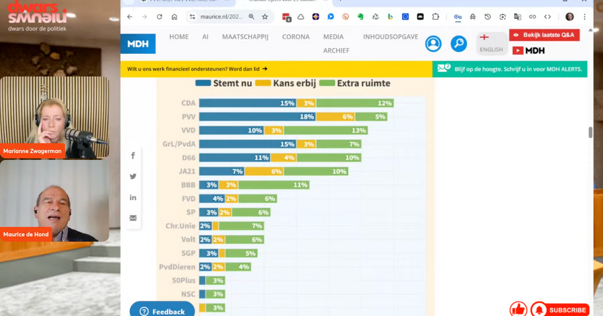 In de praktijk betekent dat: D66 en CDA nemen de regie, VVD mag aansluiten voor de schijn van stabiliteit, BBB en JA21 mogen het “rechtse randje” leveren, en de PVV wordt buiten de deur gehouden.