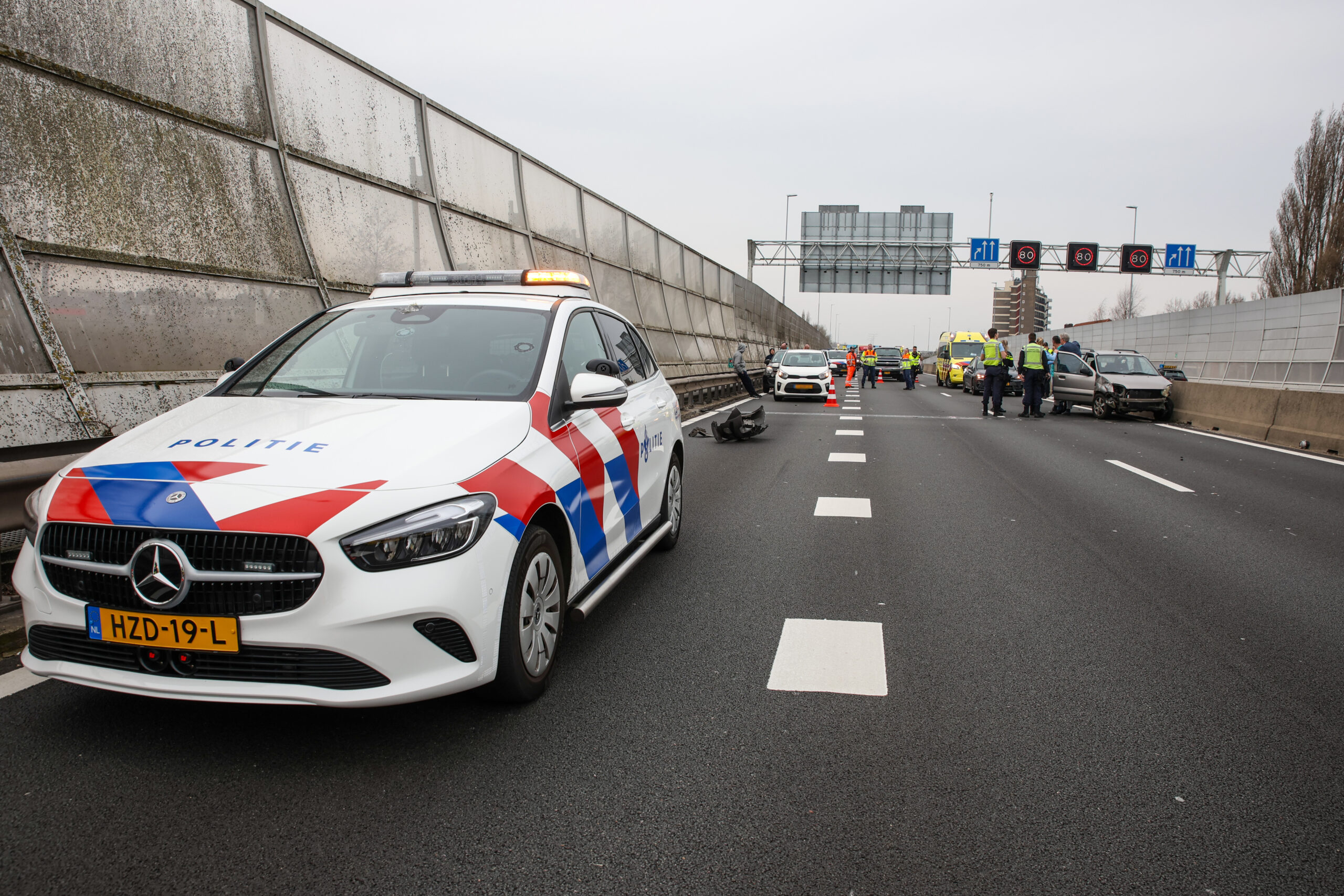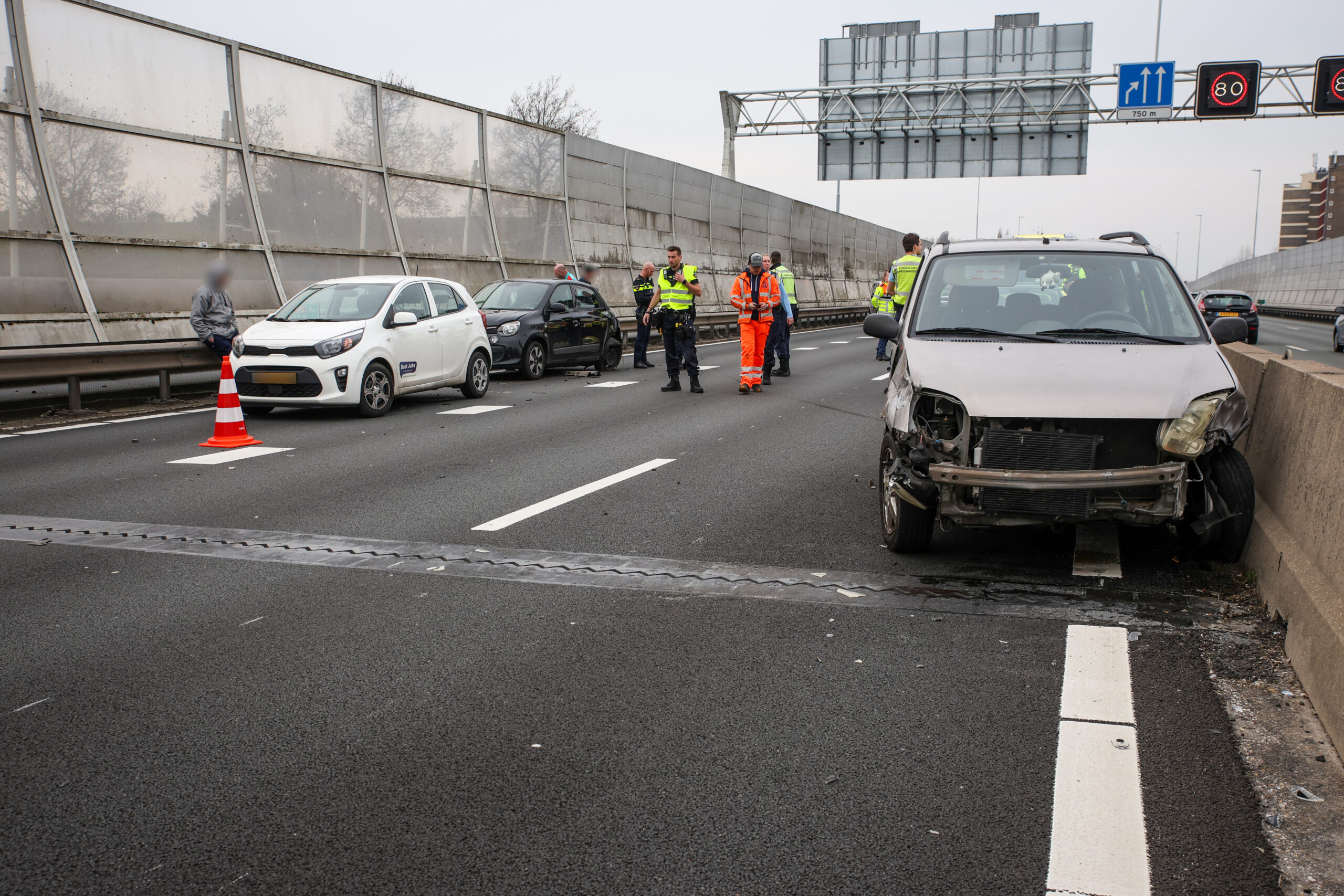 Een berger nam de beschadigde voertuigen mee. Door het ongeval ontstond file op de A13.