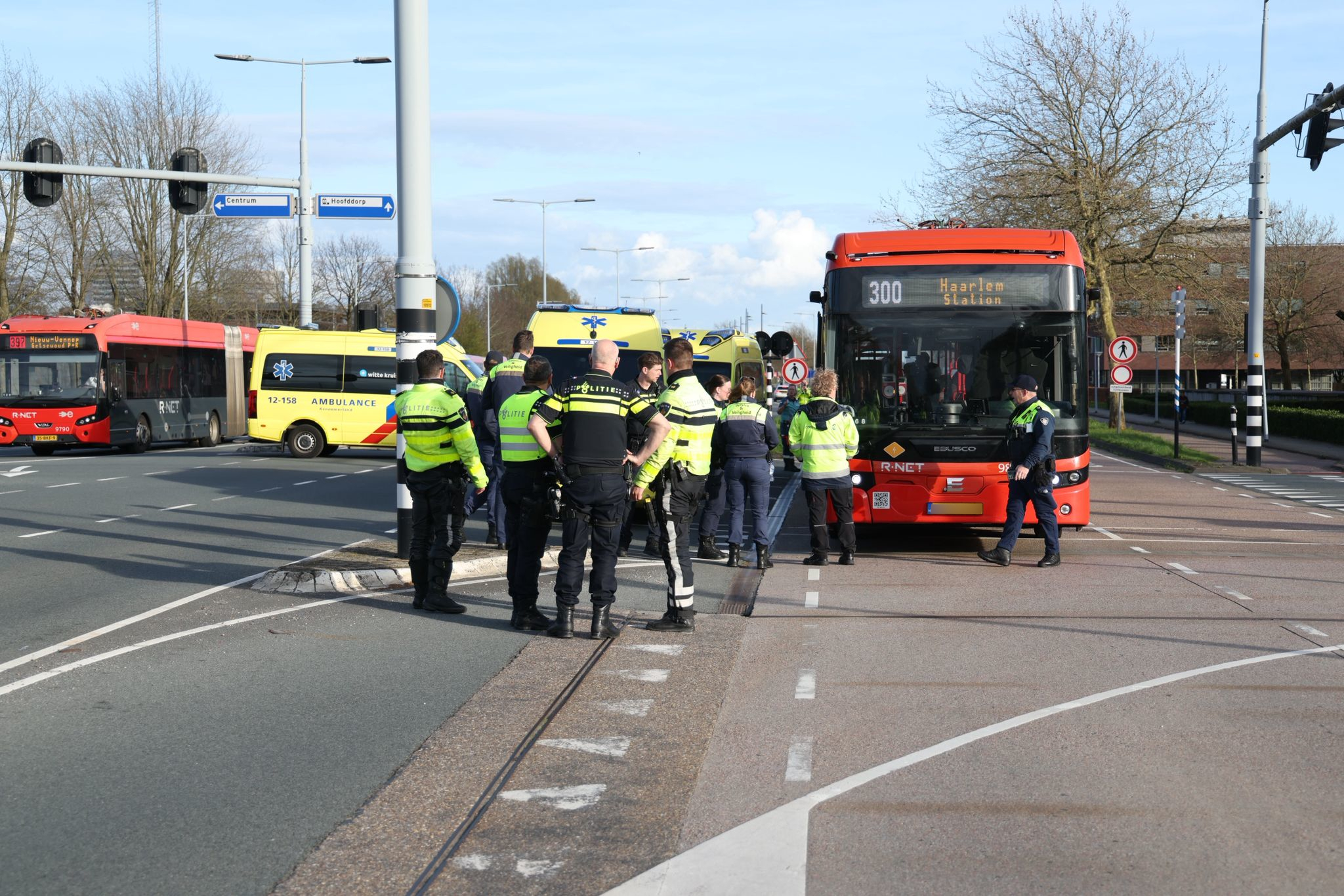 HOOFDDORP – Op de Hoofdweg ter hoogte van de Van Heuven Goedhartlaan in Hoofddorp zijn zondag meerdere personen gewond geraakt bij een incident met een bus. Het voorval ontstond nadat een automobilist door rood reed.