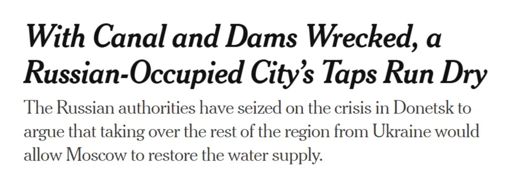 Zelfs de NYT heeft er vorig jaar over bericht, hoewel het blad natuurlijk weigerde de dader van de vernieling van het kanaal bij naam te noemen en de beroemde ‘passieve stem’-techniek van Gaza gebruikte om te zeggen dat het gewoon “tijdens het Russische offensief was vernield”: