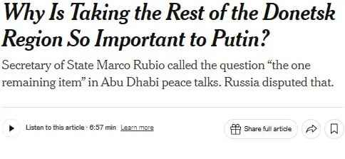 Zelensky blijft erbij dat hij Donbass niet zal opgeven. Het lijkt waarschijnlijk dat zodra Rusland de resterende regio’s van Donbass met geweld heeft heroverd, er een ongekende druk zal komen vanuit Oekraïne en zijn bondgenoten om een staakt-het-vuren te bereiken. Zij zullen beweren dat Poetin nu geen reden meer heeft om de oorlog voort te zetten, en zullen de voortzetting van de oorlog gebruiken als ‘bewijs’ dat Rusland nooit van plan was om de oorlog te beëindigen en dat Zelensky gelijk had om het gebied niet op te geven – wat zal leiden tot hysterische oproepen om Oekraïne nog meer te bewapenen om de ‘verraderlijke’ Poetin te dwarsbomen. In werkelijkheid zullen we allemaal weten dat het het Westen is dat slinkse spelletjes speelt door opzettelijk de verschillende eisen van Rusland te negeren, zich “dom” te houden en te liegen door weglatingen, door te doen alsof de Donbass-kwestie de enige resterende kwestie is, zoals in het bovenstaande artikel in de NYT.