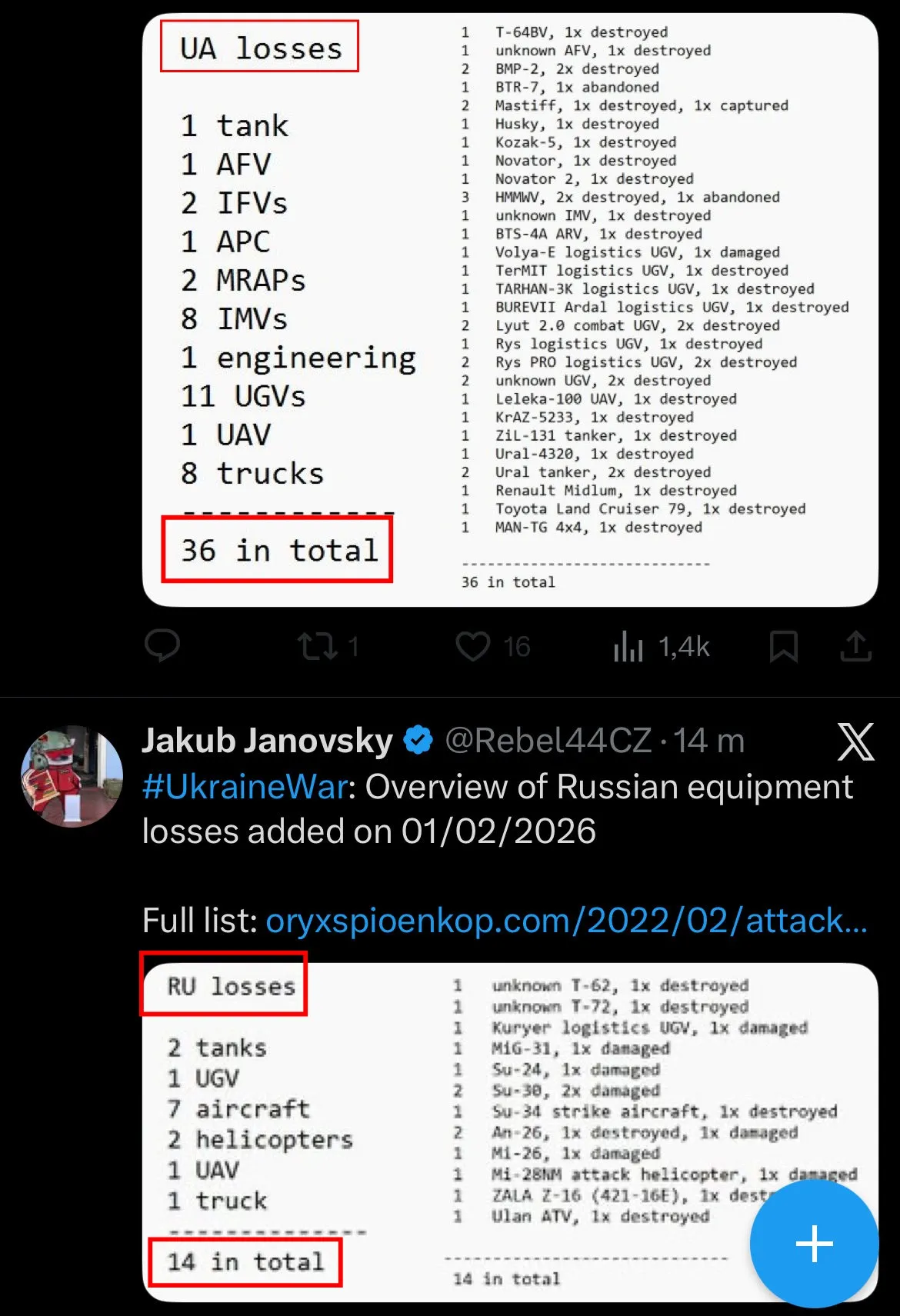 Een andere opvallende mijlpaal is het feit dat zelfs de officiële verliezen van Oryx voor de tweede maand op rij aantonen dat Oekraïne veel meer voertuigen per maand verliest dan Rusland: