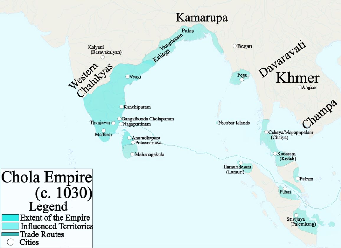 De Chola’s lanceerden een zee-expeditie tegen het Srivijaya-rijk, een dominante maritieme macht in wat nu Indonesië en het Maleisische schiereiland is. Dit betrof een landing op duizenden kilometers van hun thuishavens, een logistieke prestatie die niet onderdoet voor de huidige mariene operaties. Ze verdreven koningen, veroverden de belangrijke handelsroute van de Straat van Malakka en zorgden ervoor dat handelsgilden veilig konden handelen van het Midden-Oosten tot China. Op het land onderhielden ze een staand leger met duizenden olifanten.