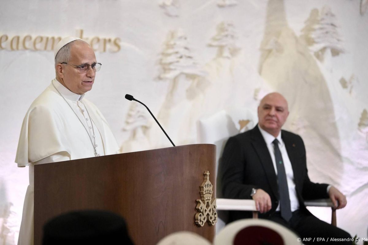 BEIROET (ANP/AFP) – Paus Leo XIV heeft in een toespraak de Libanese bevolking opgeroepen in het verdeelde en door crisis geteisterde land te blijven. Hij deed dat in het presidentiële paleis in Libanon, waar hij zondagmiddag aankwam.