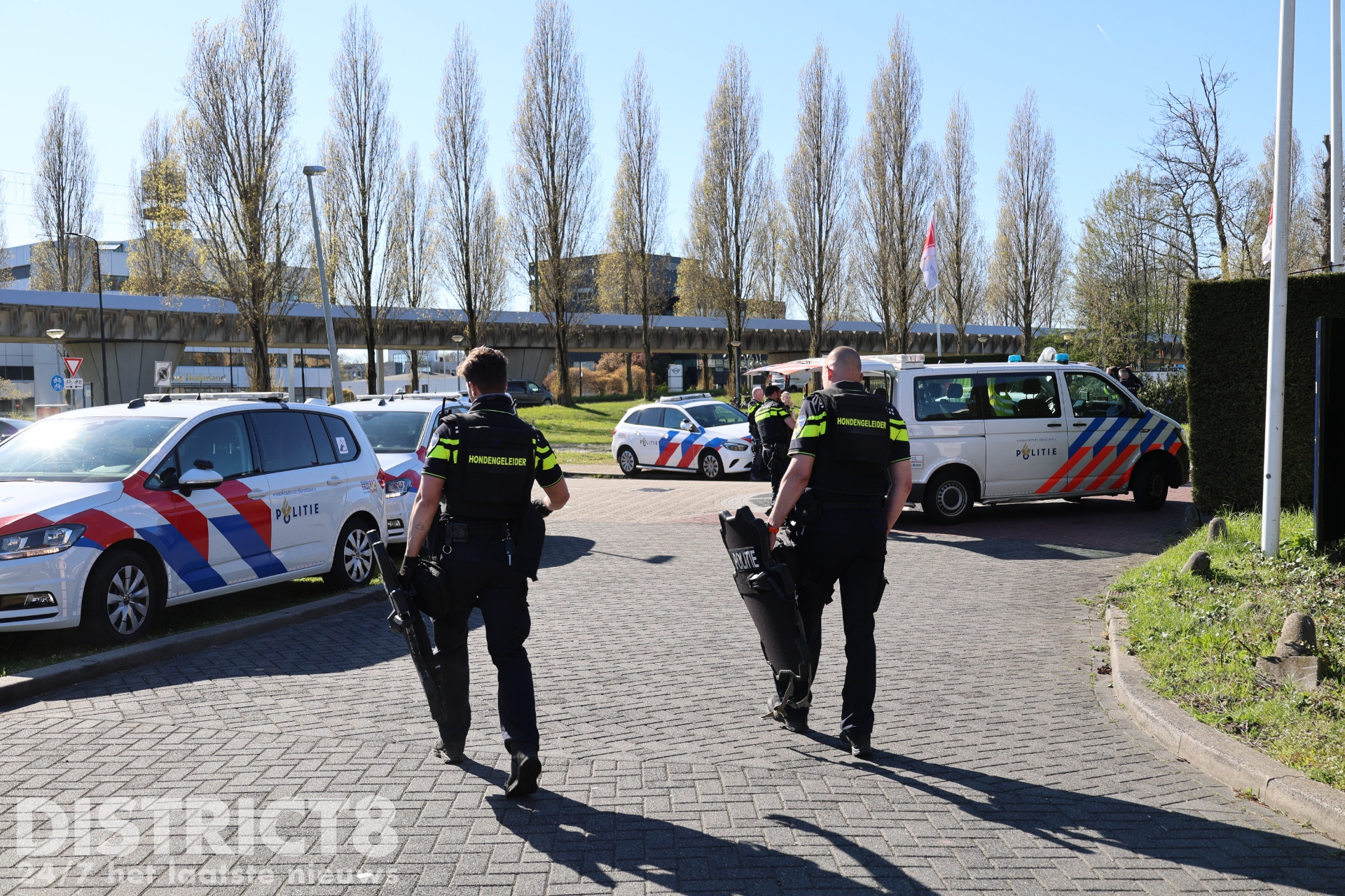 Rijswijk – Op de Laan van Zuid Hoorn is vrijdagmiddag 7 april een bedrijfsverzamelgebouw doorzocht door de politie na een melding van een verdachte situatie. De politie was met meerdere eenheden ter plaatse. Agenten van onder andere de hondenbrigade droegen kogelwerende vesten. Ook een onderhandelaar van de politie was aanwezig bij het incident.