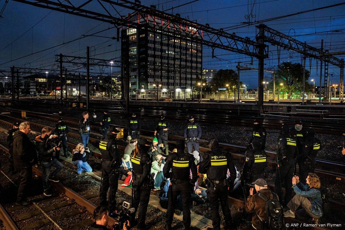 AMSTERDAM (ANP) – De politie heeft bij de actie van onder andere Extinction Rebellion (XR) op station Amsterdam Centraal ongeveer twintig mensen aangehouden. De meesten zijn aangehouden voor het lopen op het spoor, maar sommigen zitten ook vast voor belediging.