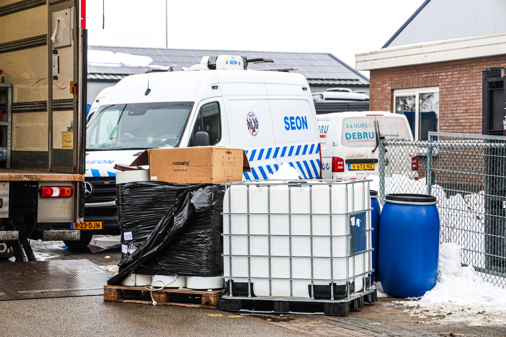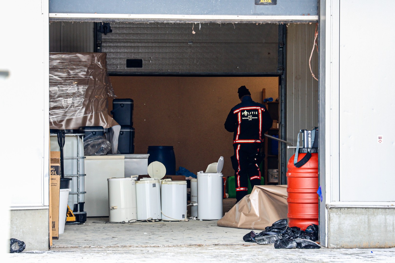 Tijdens de doorzoeking werd ongeveer 20.000 liter aan vermoedelijke afvalstoffen gevonden. Kort daarna kwam de Forensische Opsporingsdienst ter plaatse voor sporenonderzoek. Ook de Landelijke Faciliteit Ontmantelen (LFO) werd ingezet om de gevaarlijke stoffen en materialen veilig te verwijderen.