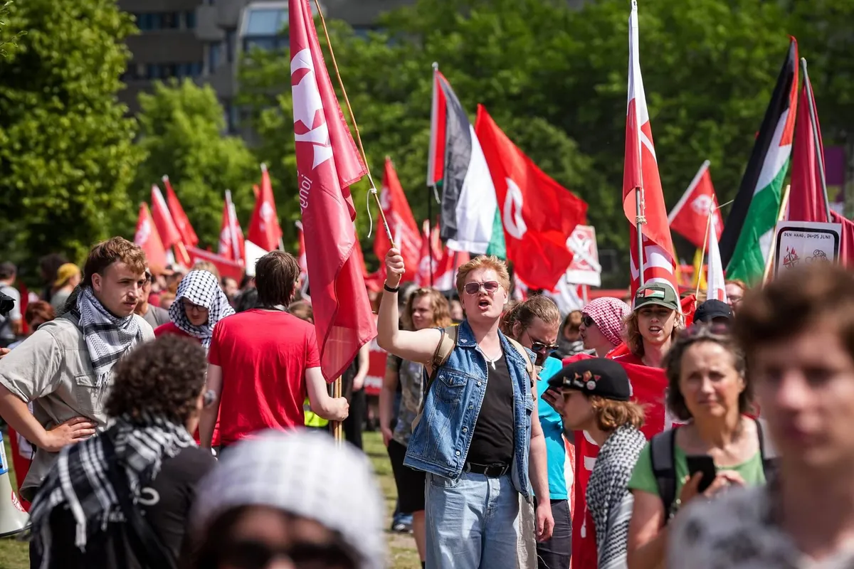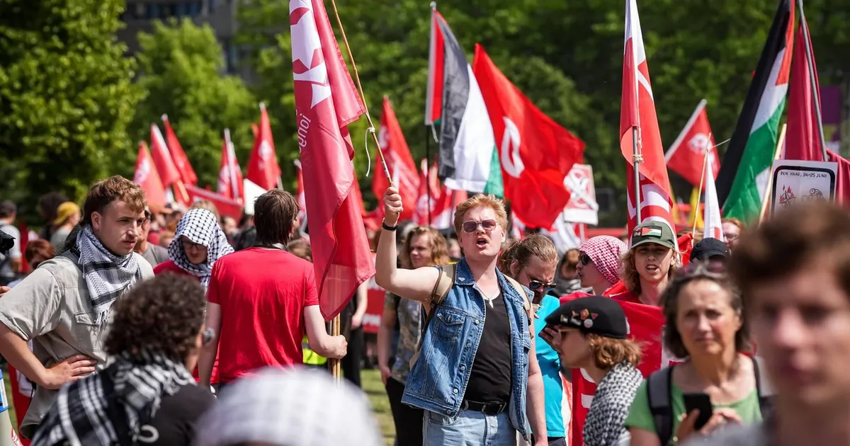 Bij het protest waren veel Palestijnse vlaggen te zien. Ook zongen demonstranten leuzen voor de Palestijnen en tegen Israël. De politie moest het ook een paar keer verbaal ontgelden.
