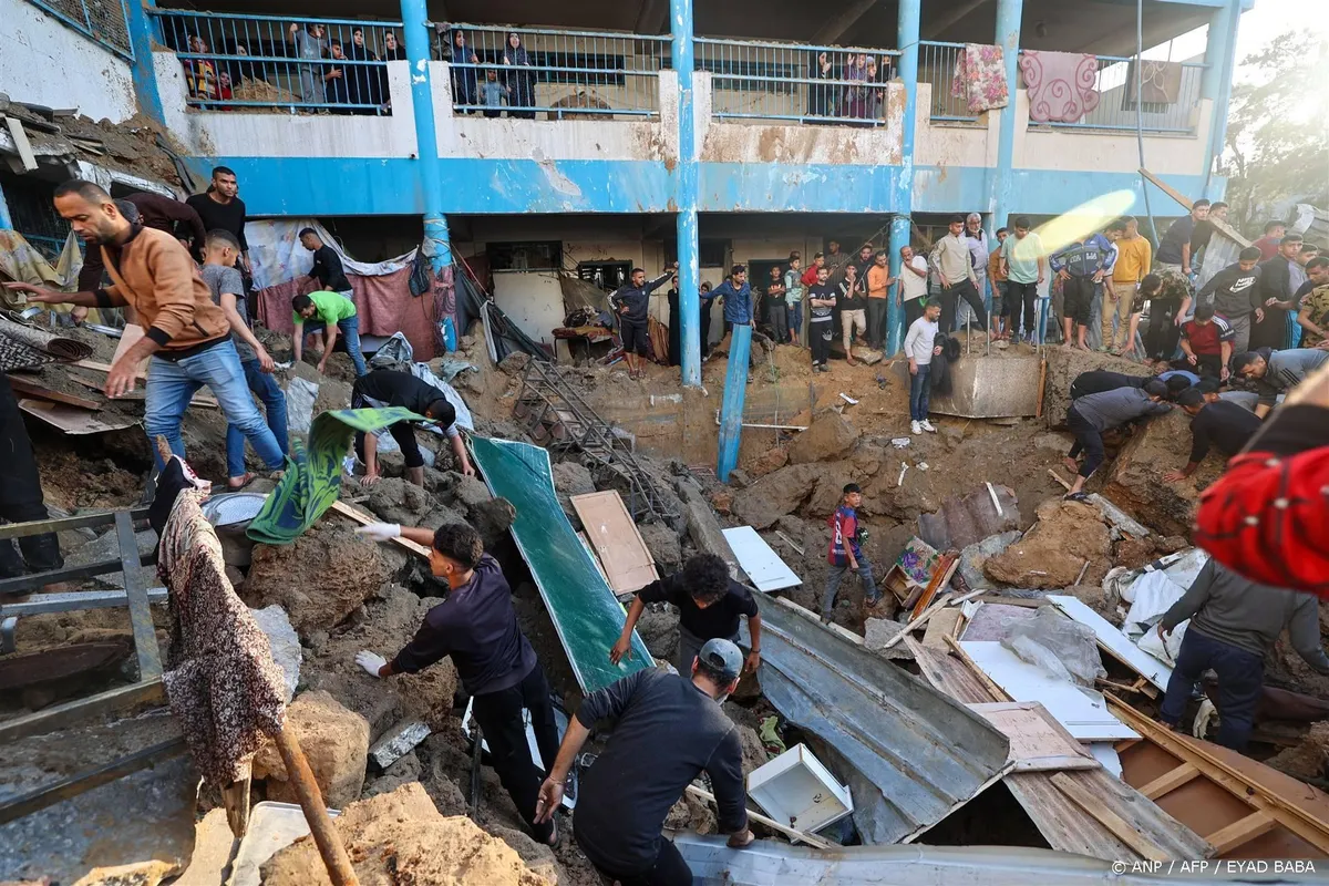 GAZA-STAD (ANP/AFP) – Israëlische luchtaanvallen op een school in Gaza die ontheemden herbergt, hebben 31 mensen het leven gekost, meldt de burgerbeschermingsdienst van Gaza. Tientallen anderen raakten gewond. Het schoolgebouw staat in het vluchtelingenkamp Bureij, in het hart van de Gazastrook.
