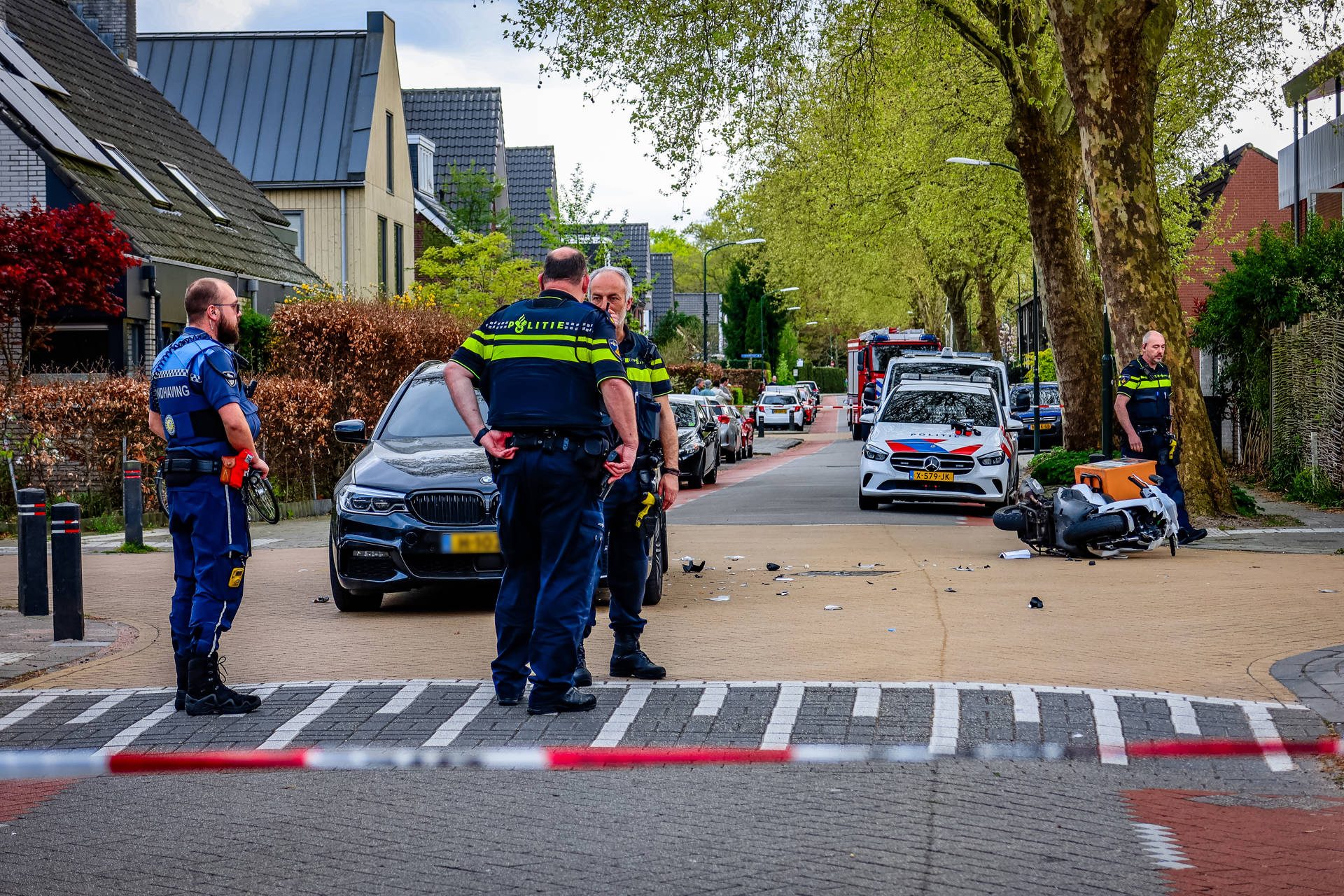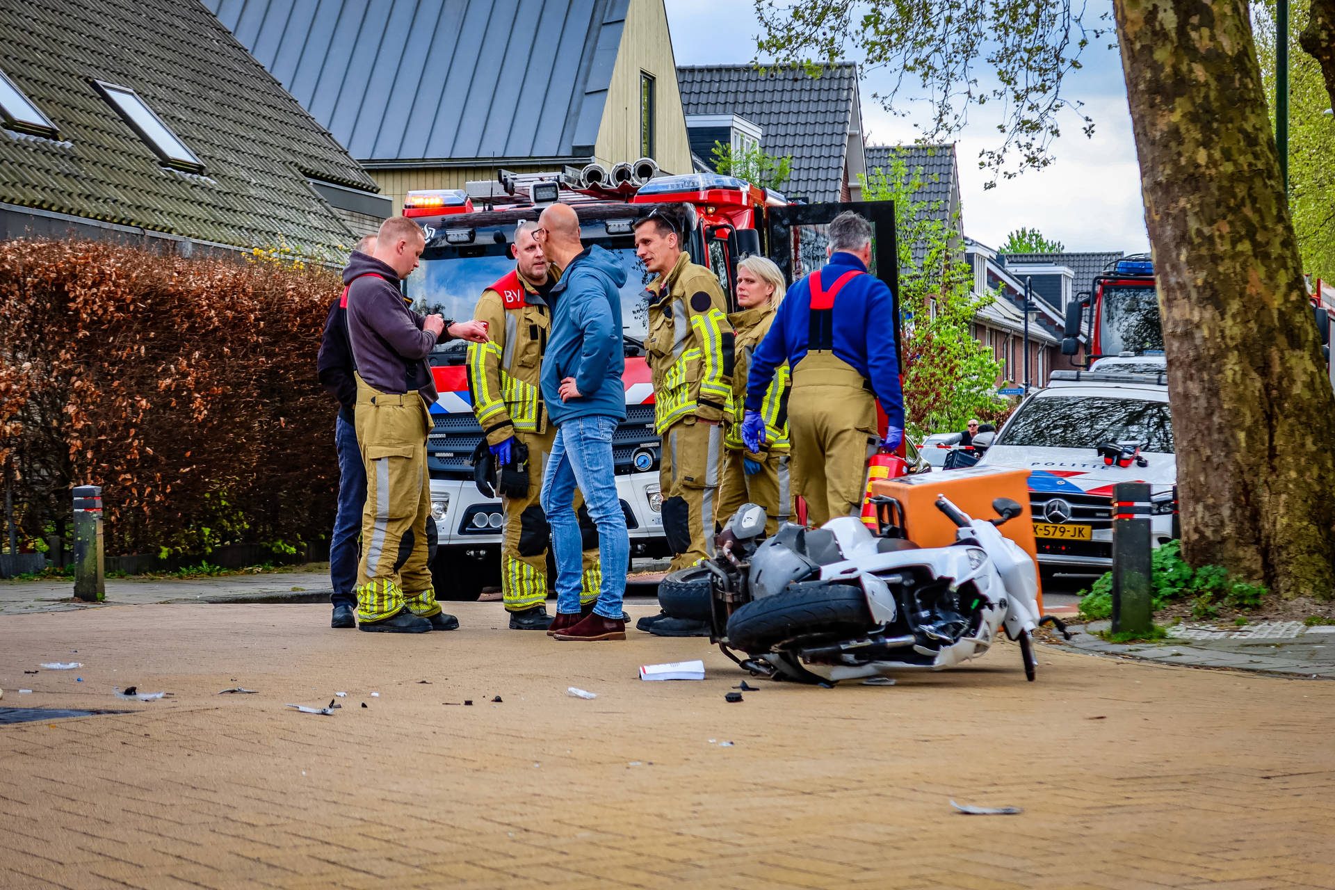 De bestuurder van de scooter is ter plaatse behandeld en daarna met spoed naar het ziekenhuis vervoerd. Over de aard en ernst van het letsel is nog niets bekendgemaakt. Hoe het ongeval heeft kunnen gebeuren, wordt nader onderzocht.