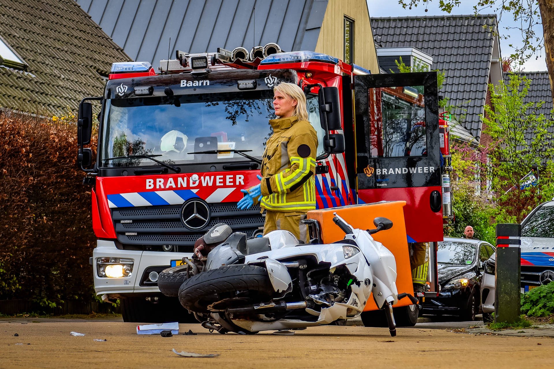 Tijdens deze inzet vond op korte afstand een ernstig verkeersongeval plaats op het kruispunt van de Zandvoortweg met de Plataanlaan. Daar kwam een scooterbezorger in botsing met een personenauto. Vanwege de ernst van de situatie werd ook een traumahelikopter opgeroepen voor medische ondersteuning.
